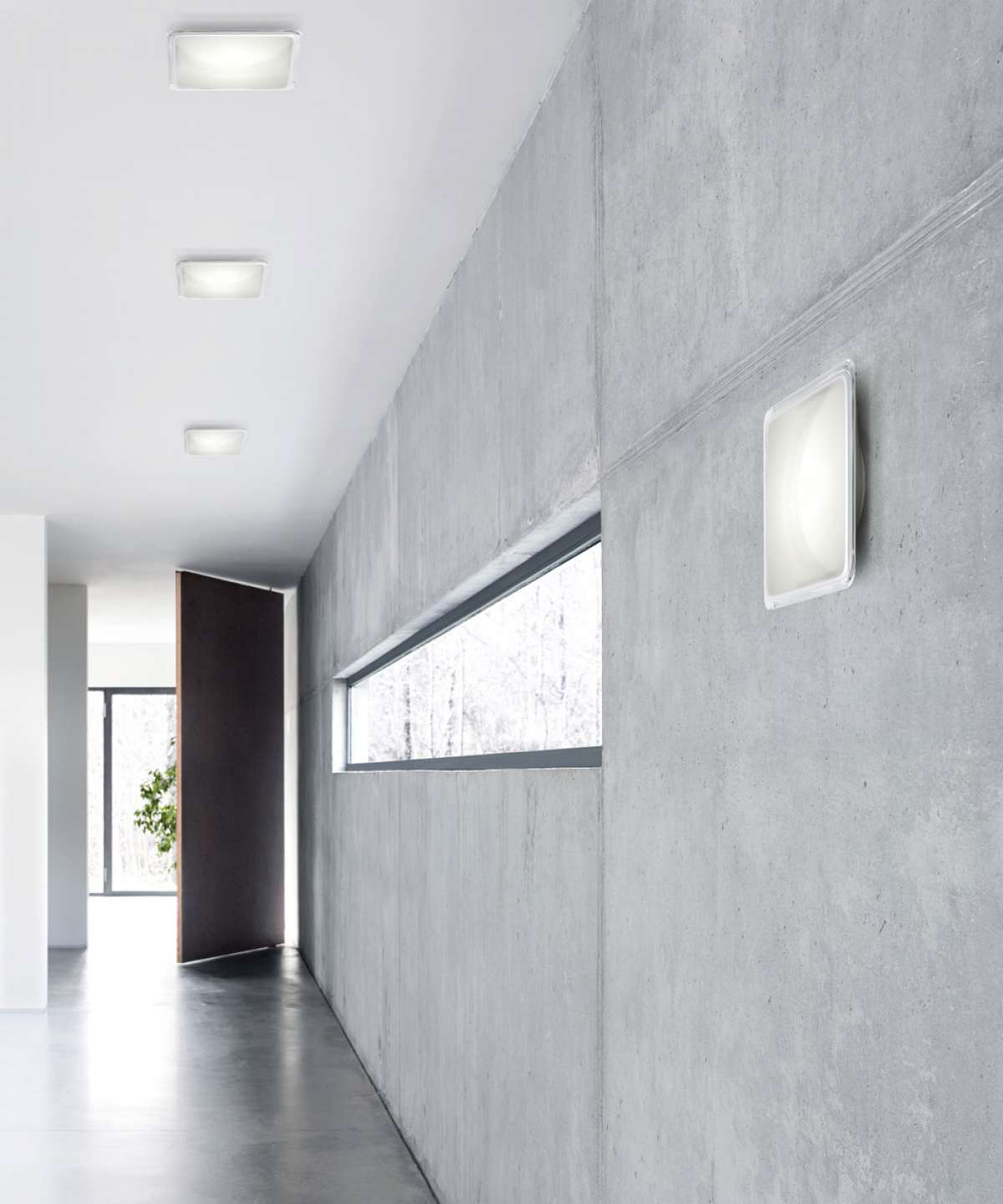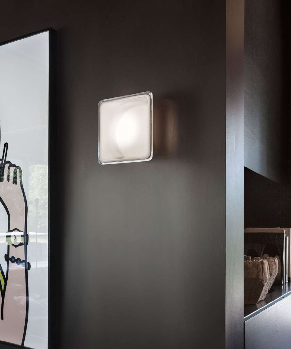 Much thinner than a traditional applique, Illusion is an LED wall lamp that significantly reduces energy consumption. The look of a sphere within a square is generated by the optical effect of the Fresnel lens; the body of the planar light fixture has a thickness of just 4 centimeters.