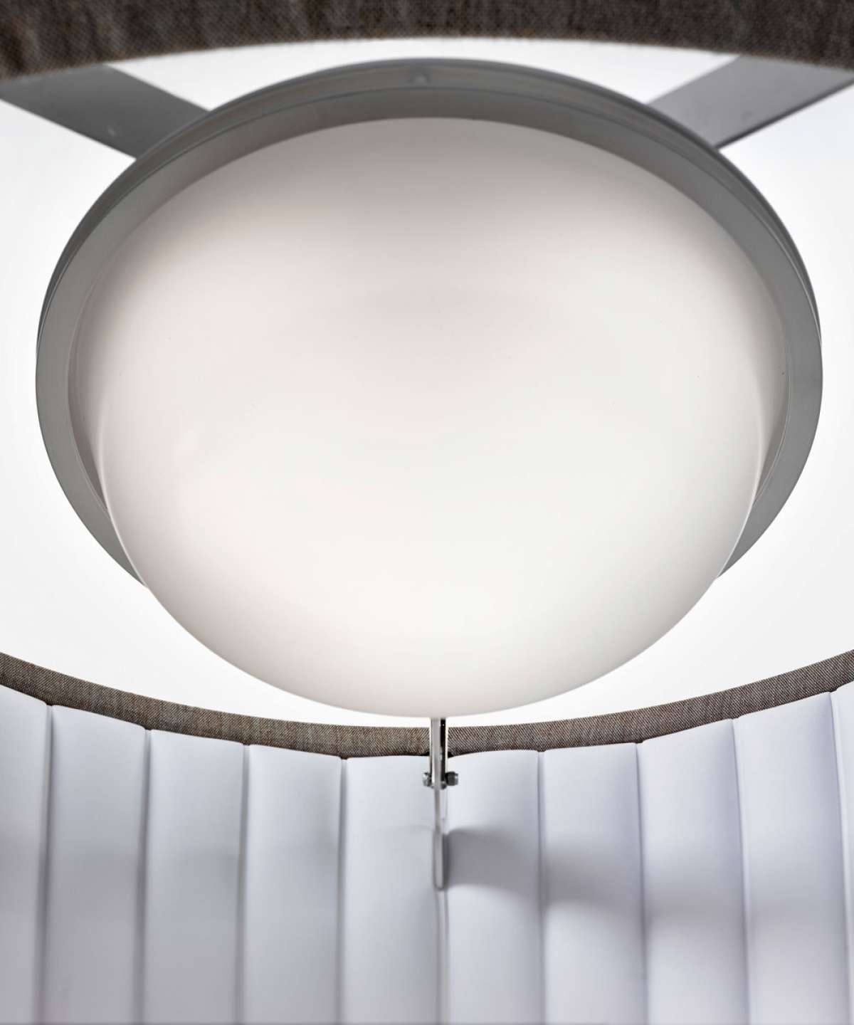 Quality lighting combined with acoustic comfort and the beauty of fabrics, for this family of suspension lamps. A lighting system that matches decor solutions with high levels of sound absorption, for public and private spaces.