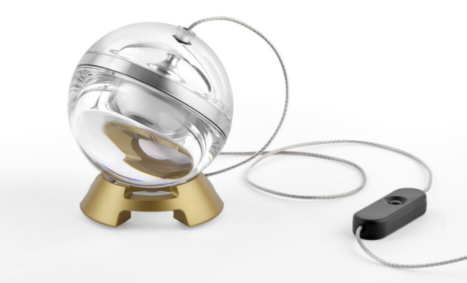 A small turned aluminum base houses the Limbus body, thus giving the lamp the ability to direct the light beam in all directions.