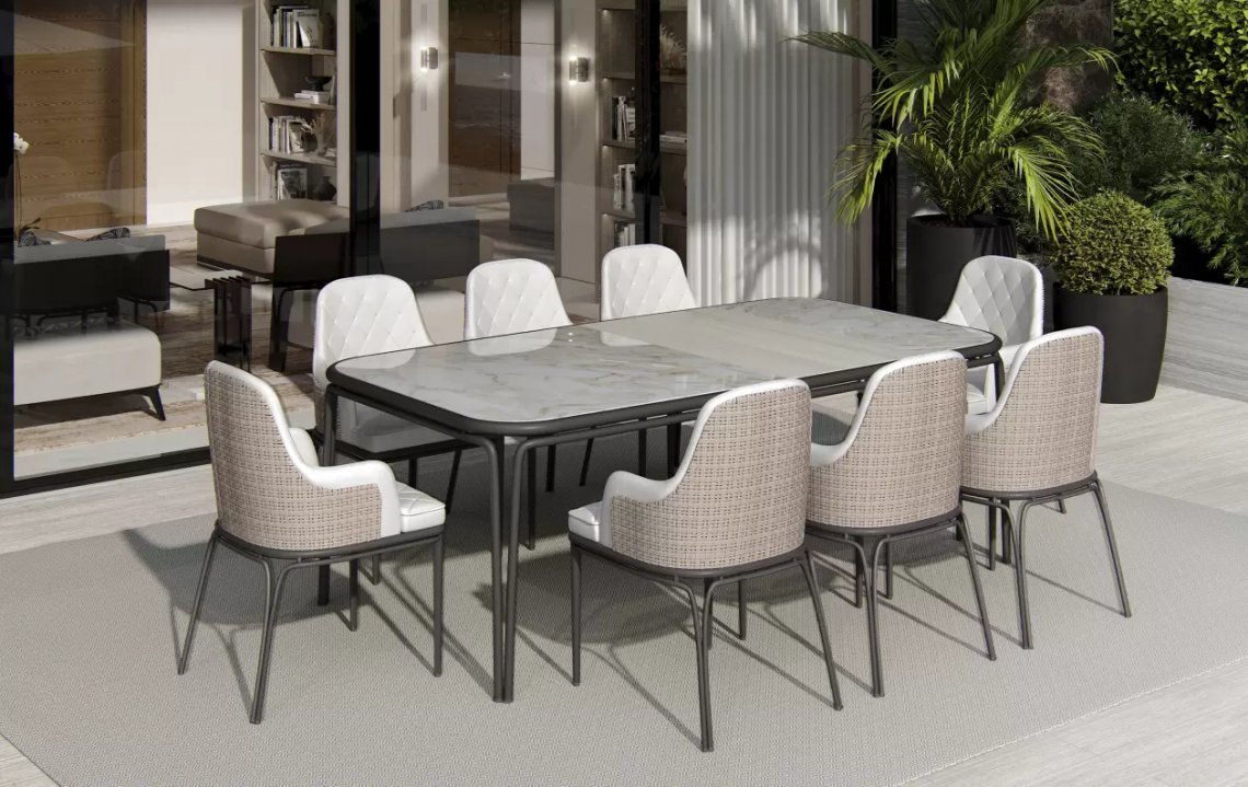 Charla wood was designed to feel the balance beetween blending luxury and comfort into one. Made with Stainless Steel, Powder Coating & Synthetic Mesh this elegant chair is a timeless piece of boundless elegance, ideal for a lavish outdoor dining areas.
