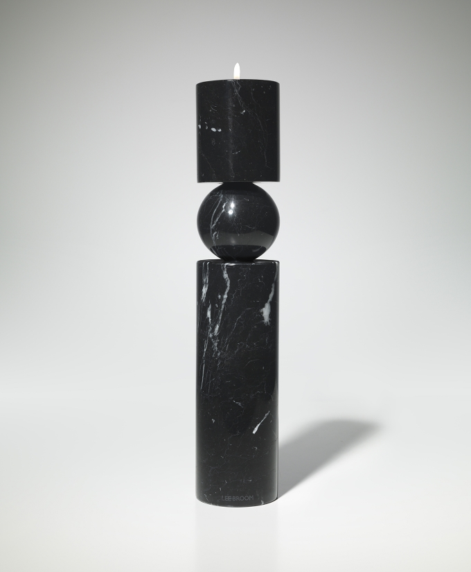A new version of the Fulcrum candlestick has also been reimagined in a tactile, rough-hewn solid travertine. A play on the concept of pivots and supports, Fulcrum is a sculptural and monolithic candlestick whose cylindrical stem appears to balance on a central sphere.