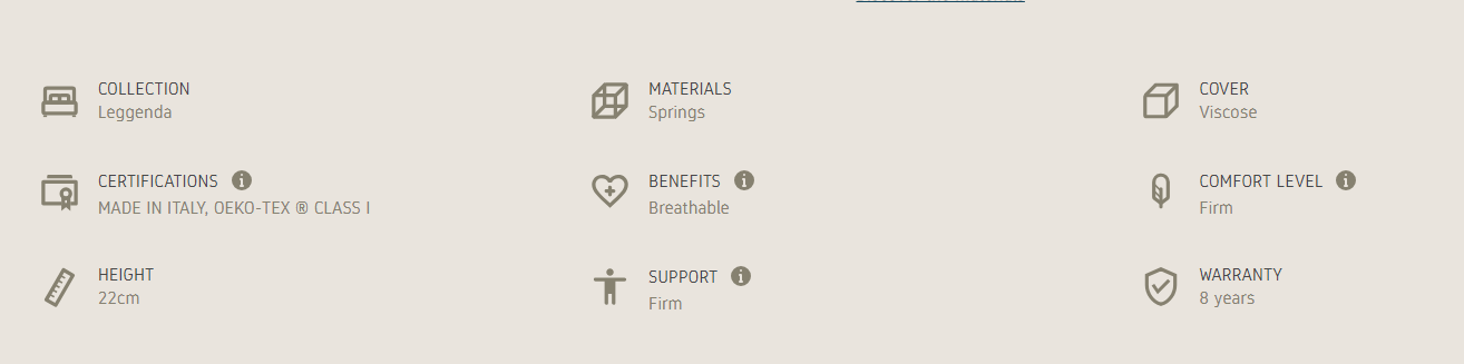 Sonno Rest with the Viscose cover is soft to the touch and ensures a refreshing sleep throughout the night. The pocket springs provide a differentiated and a firm support to the body, all of which in 22 cm of height.