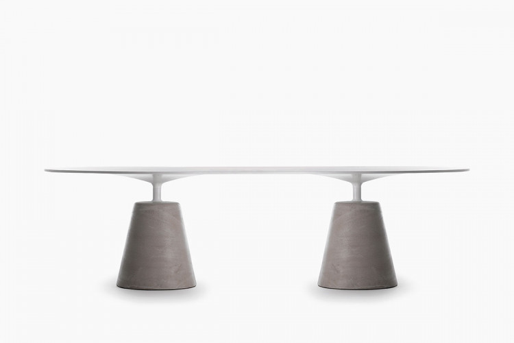 The iconic table, with its fluid and elegant silhouette, completely reveals the nature of what it represents: “a round table” that seems to float above a solid, inorganic base. A mixture of natural and industrial materials that are blended to create a new product with a smooth design, following the same philosophy of Flow collection. Rock Table unique style, based on simplified shapes, is combined with innovative production systems and this makes MDF Italia tables suitable not only to modern living rooms, but also to lounge designs and working contexts, such as offices, meeting rooms, conference rooms with a strong identity.
