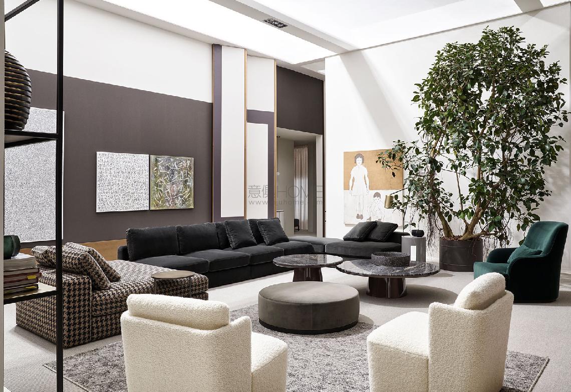Leon是一系列整體式的咖啡桌,提出漆器頂部和底座用啞光或光澤的表面來匹配大理石的頂部。