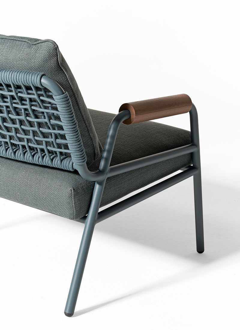 堅固的伊羅科木材,鋁材以及編織繩是Zoe Wood Open Air的靈魂:一系列的扶手椅以及戶外長凳,將室內的舒適氛圍傳達到了室外. 座椅扶手使用的伊羅科木材以及椅背編織方式的可選擇性,讓其看來更具通用性. 在鋁制框架上的聚丙烯繩的編織完全由手工完成,并且有兩個版本可用選擇, 其顏色分別有四種可供選擇: Chalk, Petrol, Elephant 和 Black.