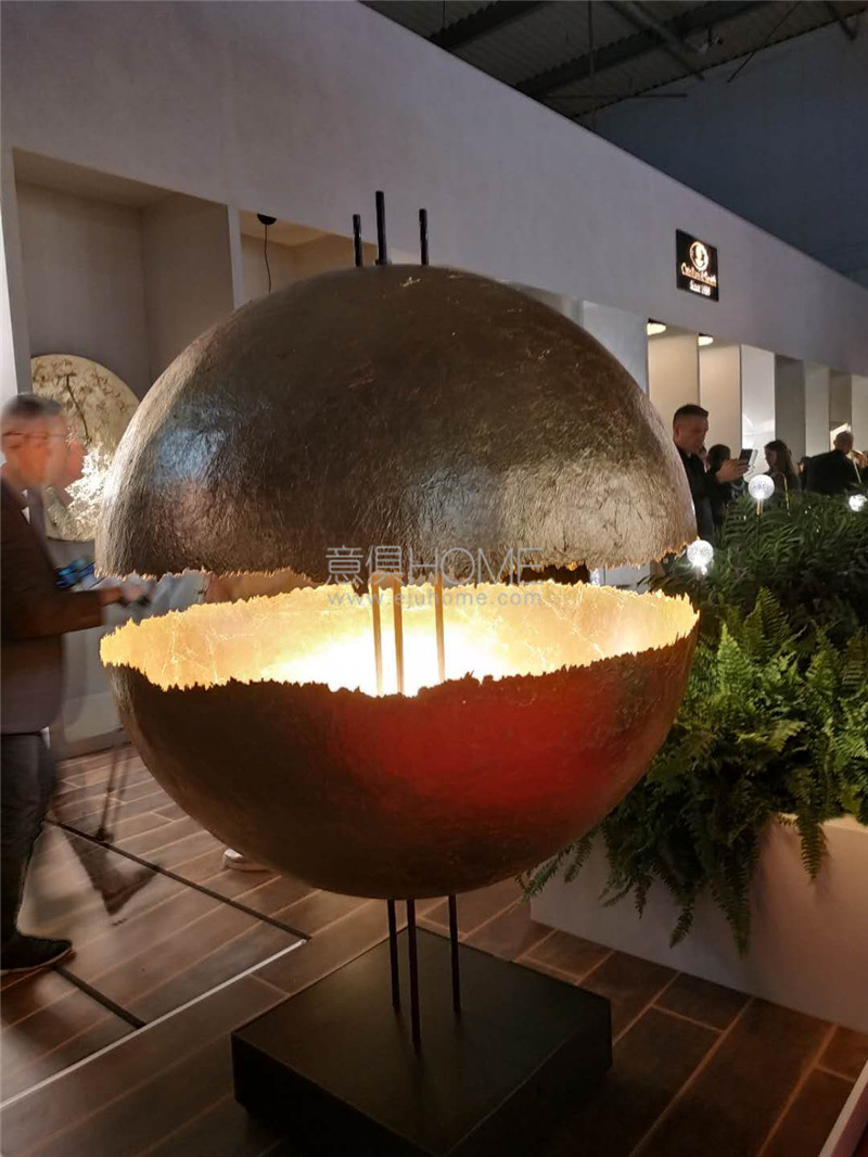 鋼筋從球中穿透,如火焰一般的光線從裂成兩半的銅球中間照射出,正如該品牌設計師所說,catellani&smith不遵循模式和慣例,每一個設計都打破固有空間。