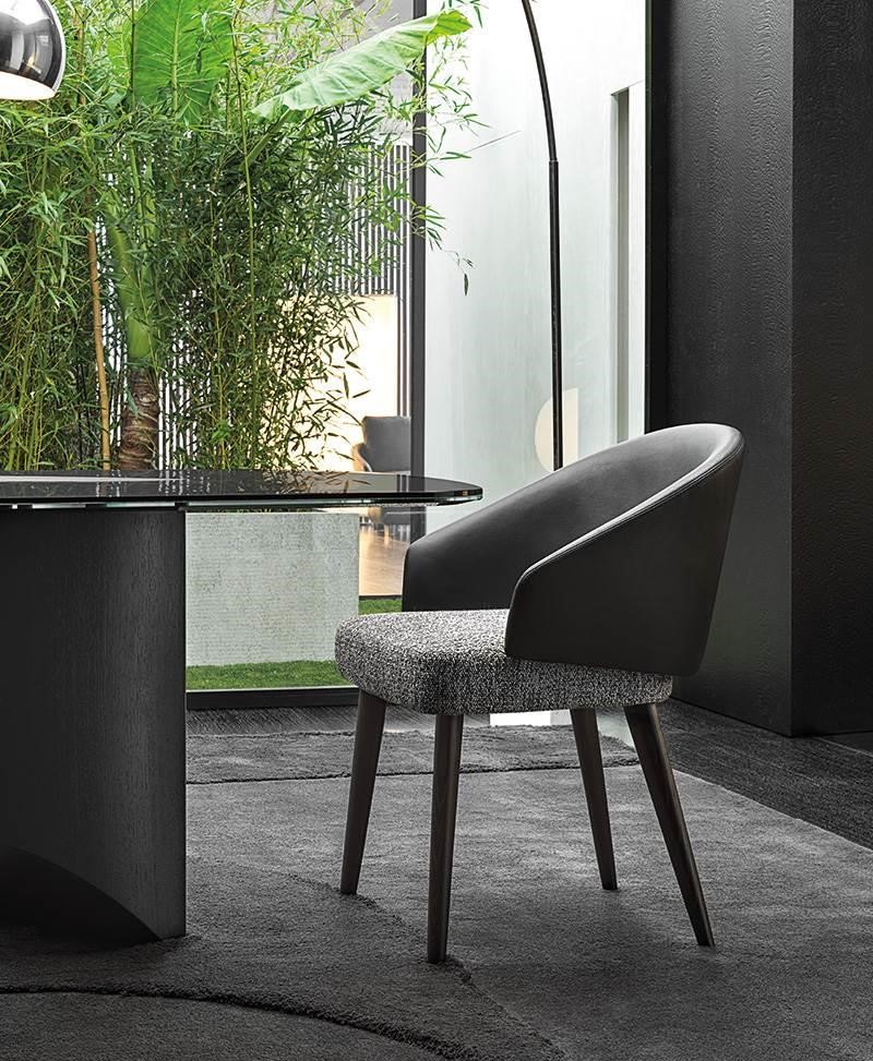 Each piece can be used in a wide range of potential combinations of materials and colours. And while the impression made by Lawson oozes with Seventies style if the arrangement includes pieces with black leather, structured fabric upholstering and feet with a chrome finish, instead, a more decorative spirit shines through if the option chosen features velvet and chenille.
