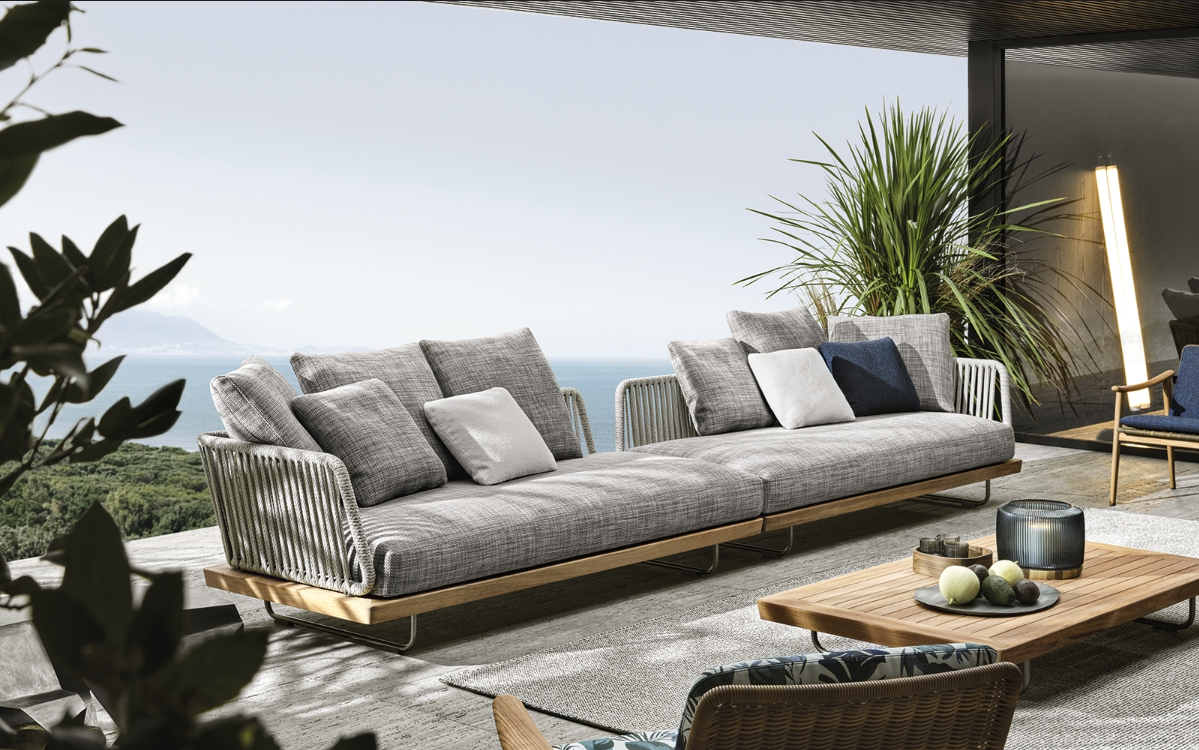 With its enveloping design, the Sunray seating system is inspired by the desire to design situations that convey a sensation of intimacy and relaxation, in line with the concept of open-air living that imitates the comfort and beauty of indoor furnishing solutions.