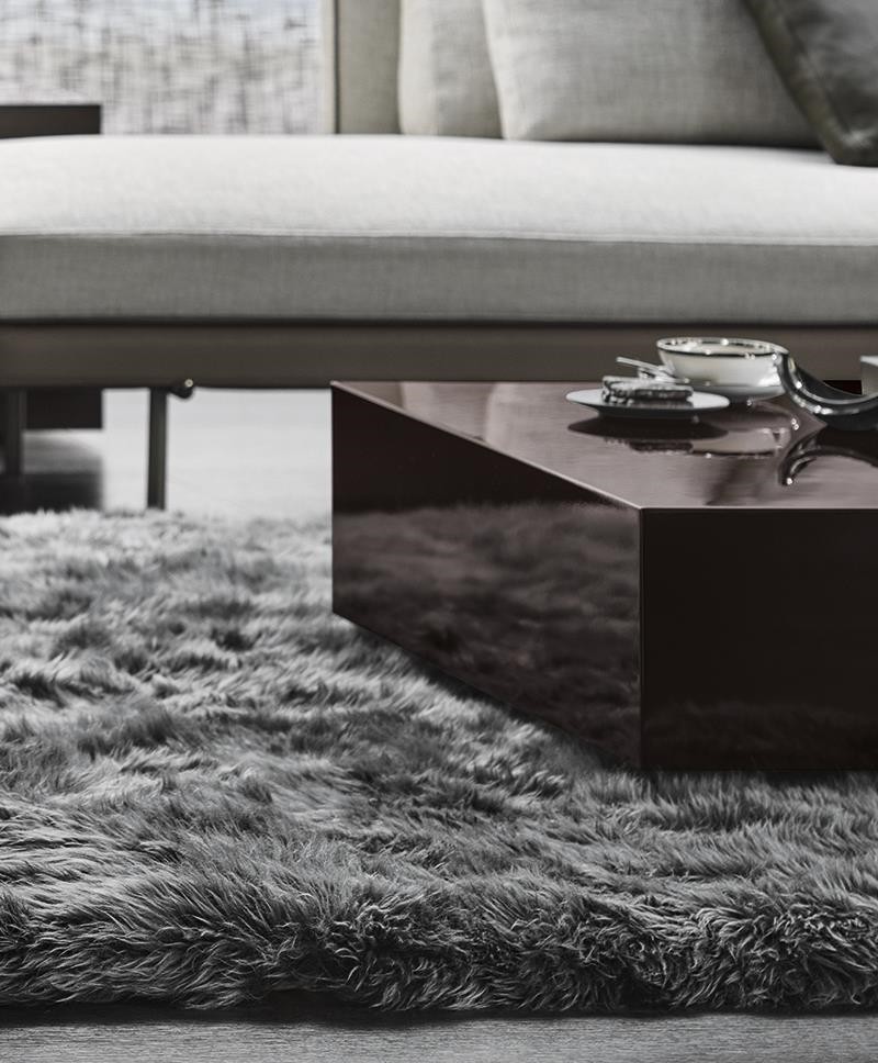 Personalised on the back with an elegant jacquard fabric featuring the Minotti logo, it guarantees anti-slip properties, thanks to a technical printed cotton fabric with micro-particles of silicone running along the perimeter sides.