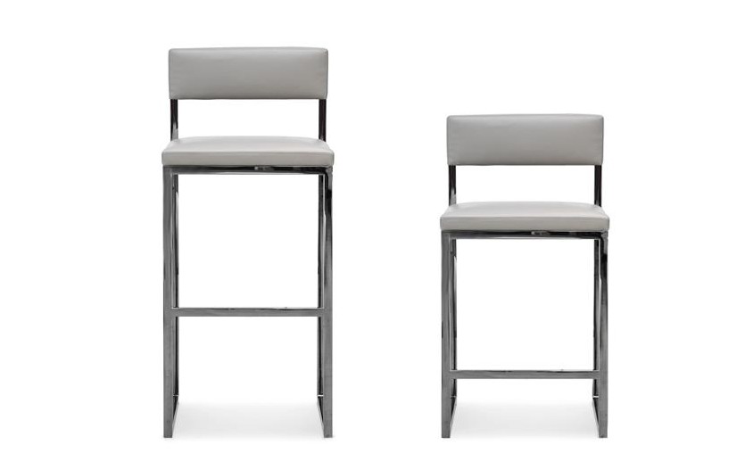 Available in two heights of 97 and 110 cm, perfectly adapting to the most diverse residential and Hospitality contexts, the metal base is available in the glossy Black-Nickel finish while the upholstery of the padded seat is available both in the leather version and in the fabric version.