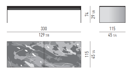 The stratified bearing structure with matt black lacquered finish features aluminium sides with Golden Brown finish and a top in Grigio Orobico marble.