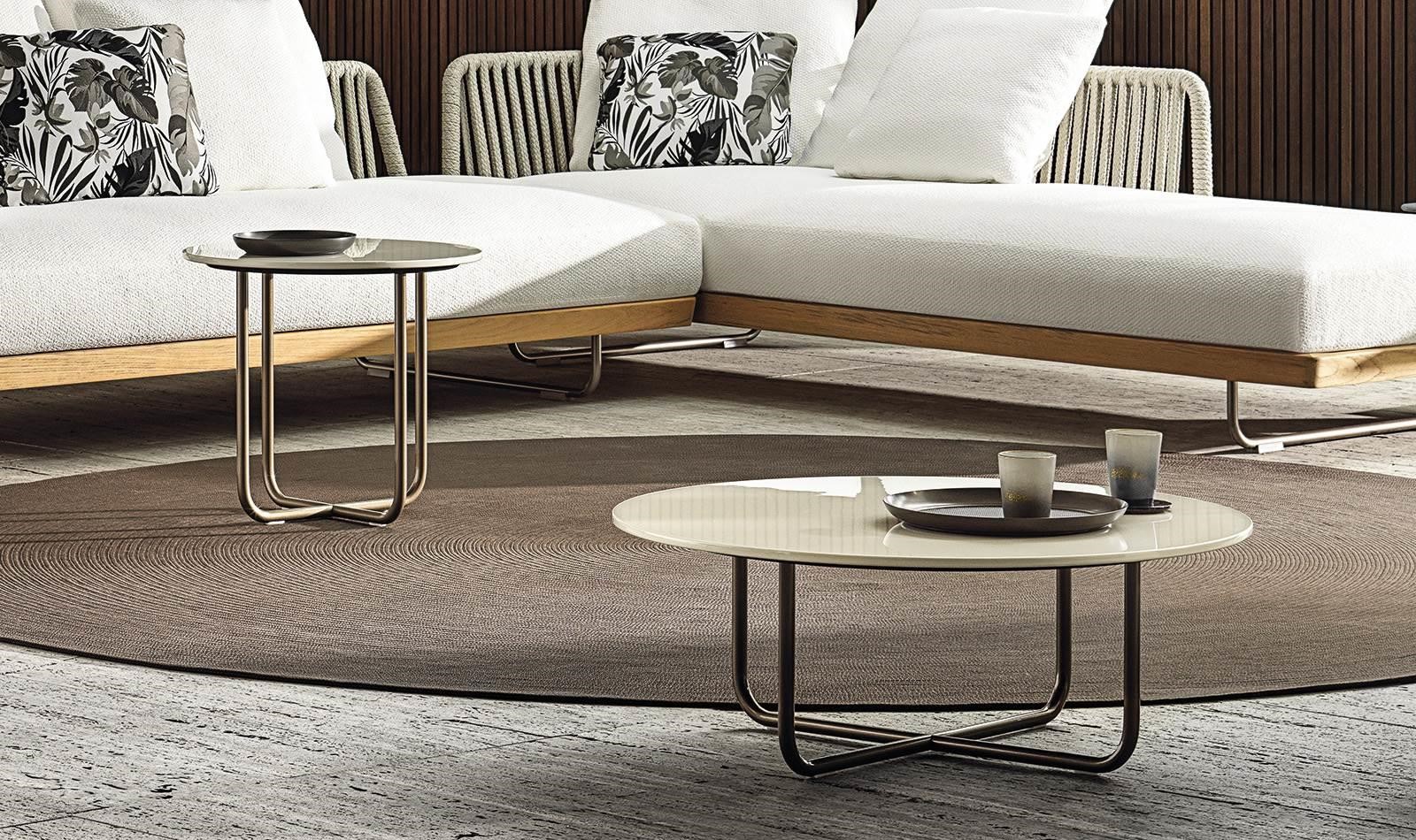 The Sunray Meg family hosts a series of versatile, practical coffee tables in various sizes and heights that blend in perfectly with the most diverse compositions of the Outdoor collection.