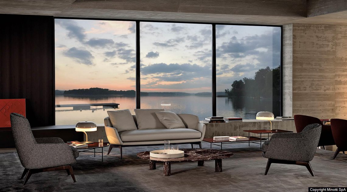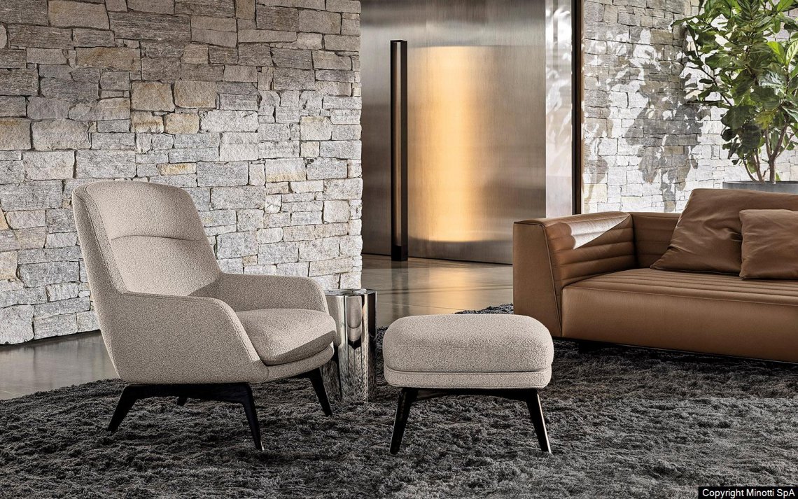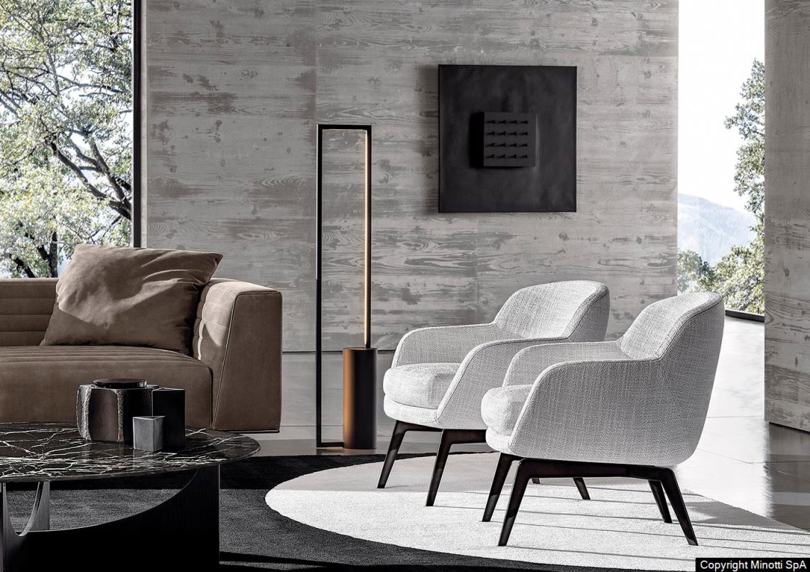 The distinctive characteristic and inspiration behind the Belt family, designed in the all-fabric or leather versions, is the idea of a belt that draws the profile of the body, encircling it, then breaking off and fastening on the front of the seat.