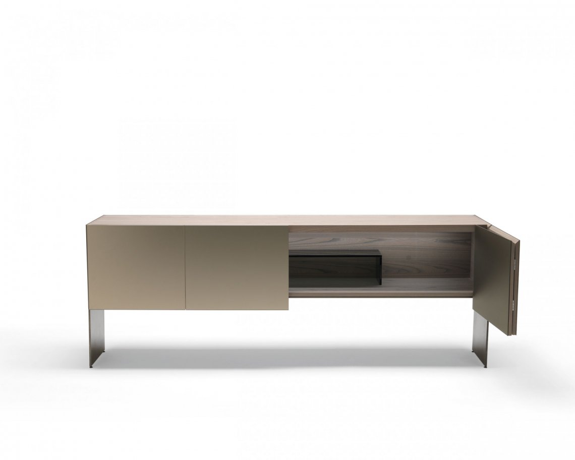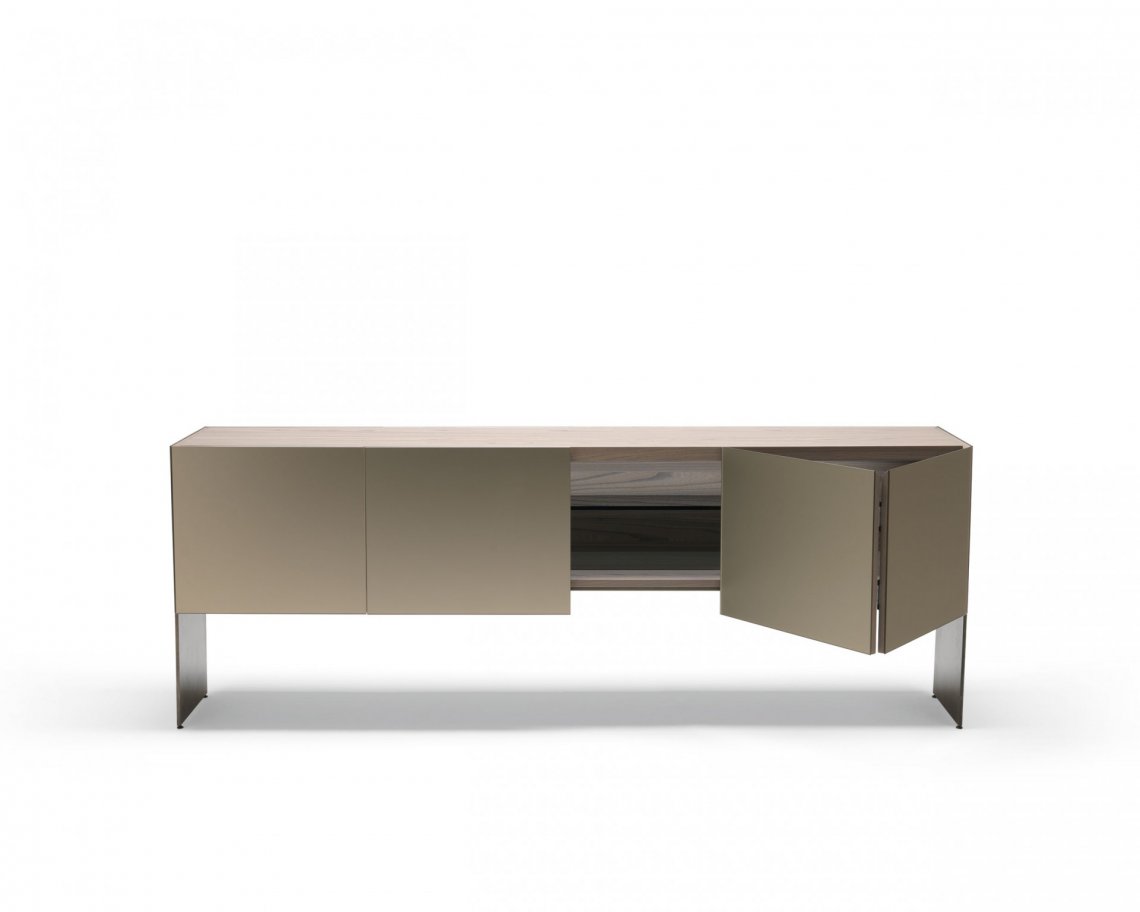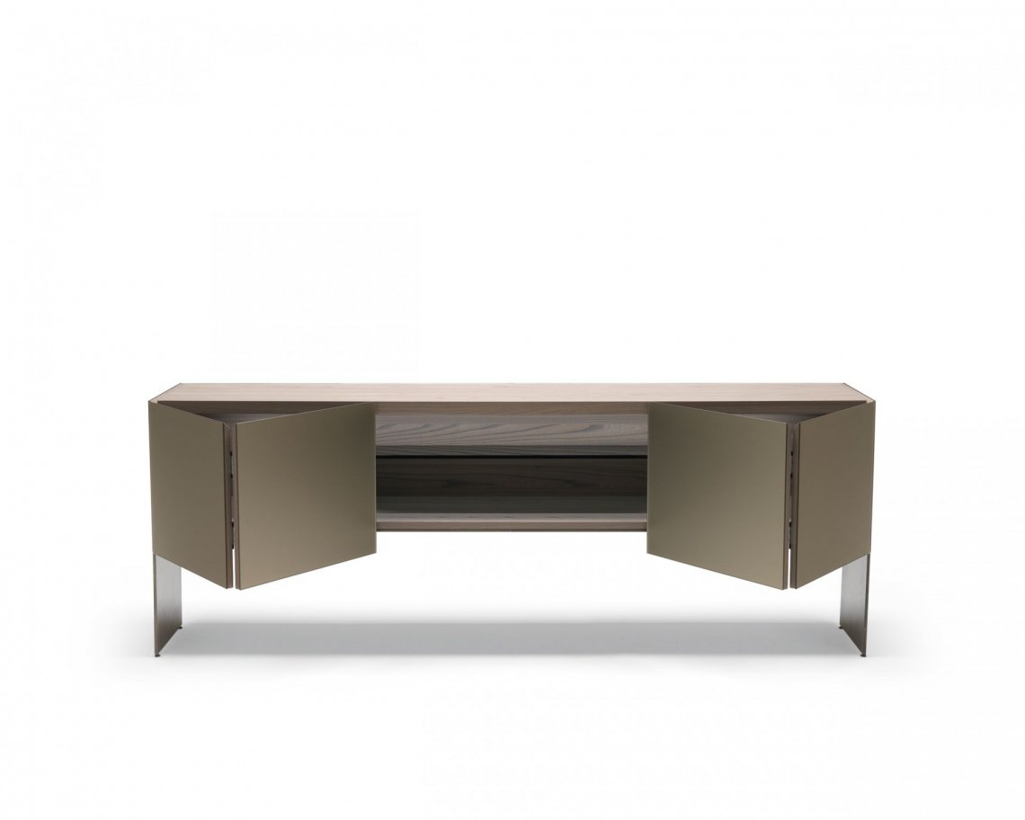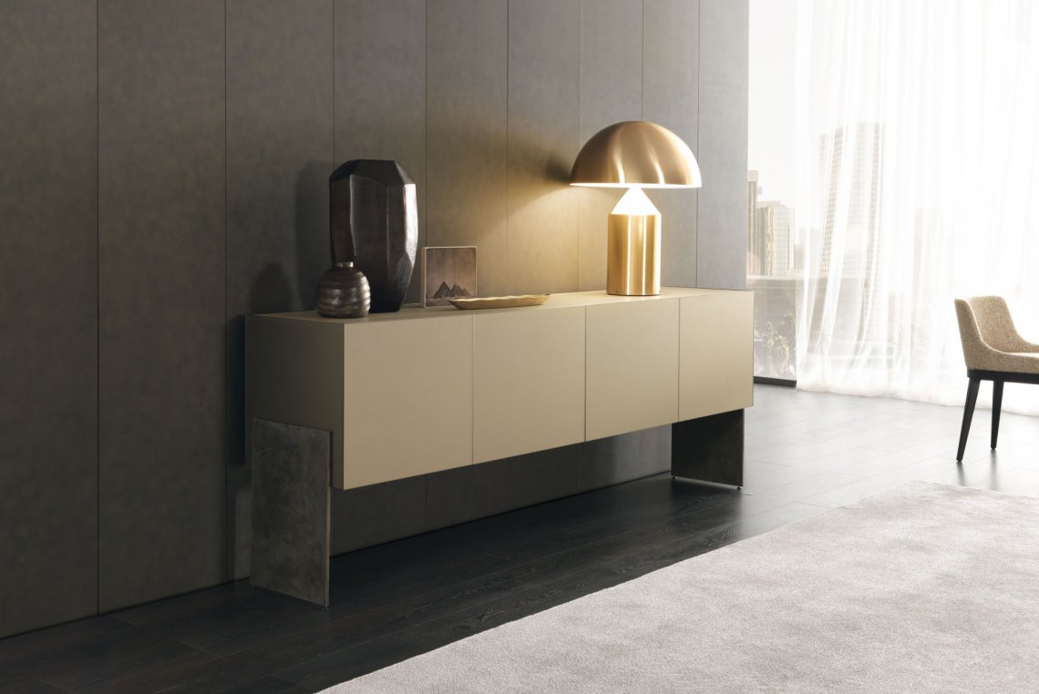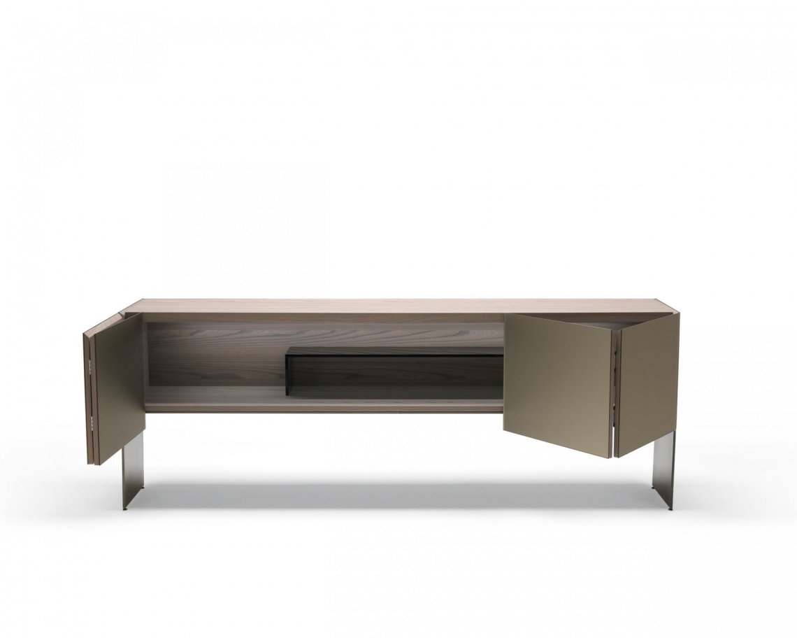 修長的Aipim餐邊柜,傾腿與側面的延伸傳遞出一種優(yōu)雅感,最初的雙折疊門完全像一本書一樣打開展現內部的全貌。這件作品的內在精致使它從簡單的存儲物品提升到精致優(yōu)雅的外顯。
