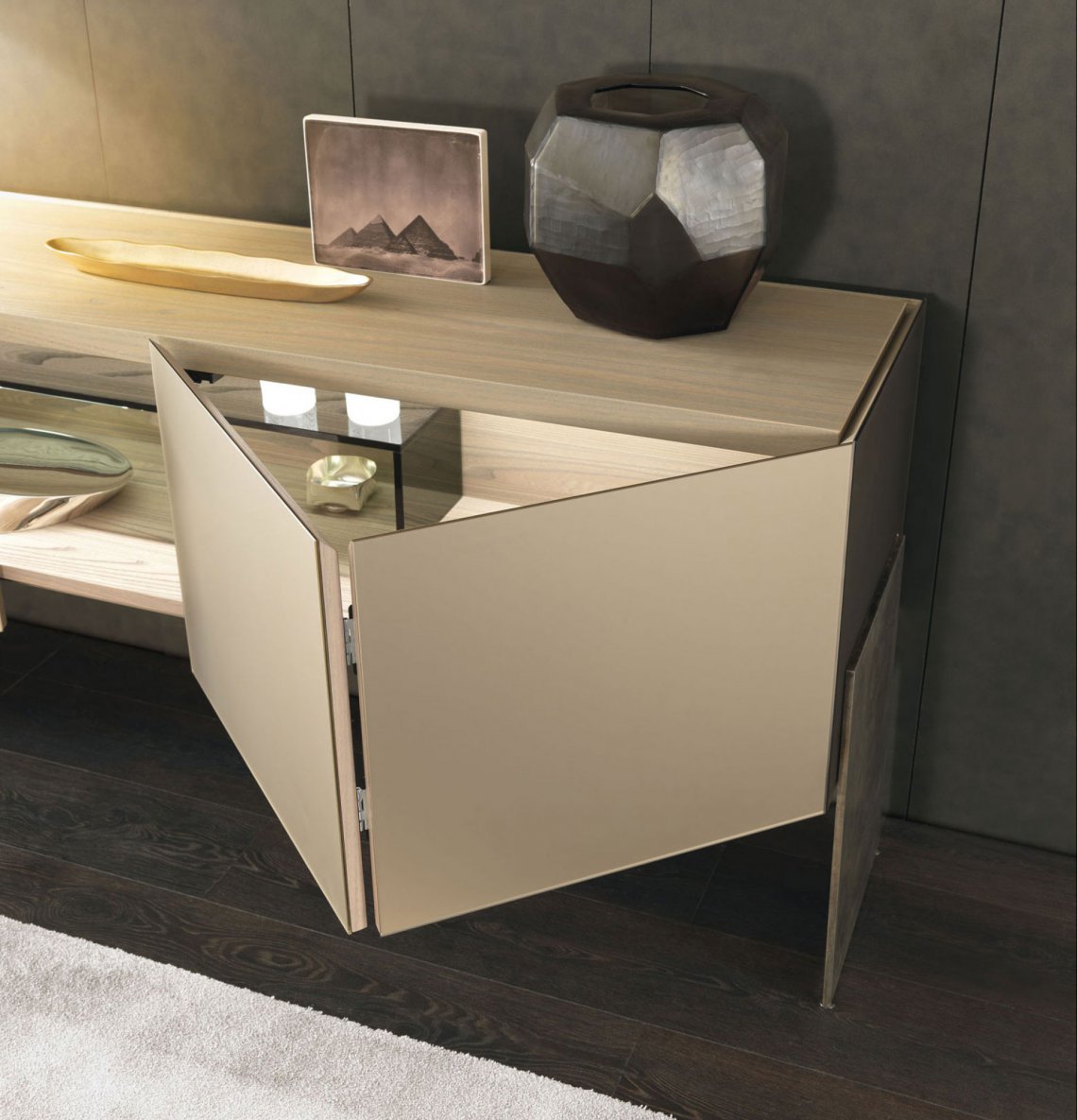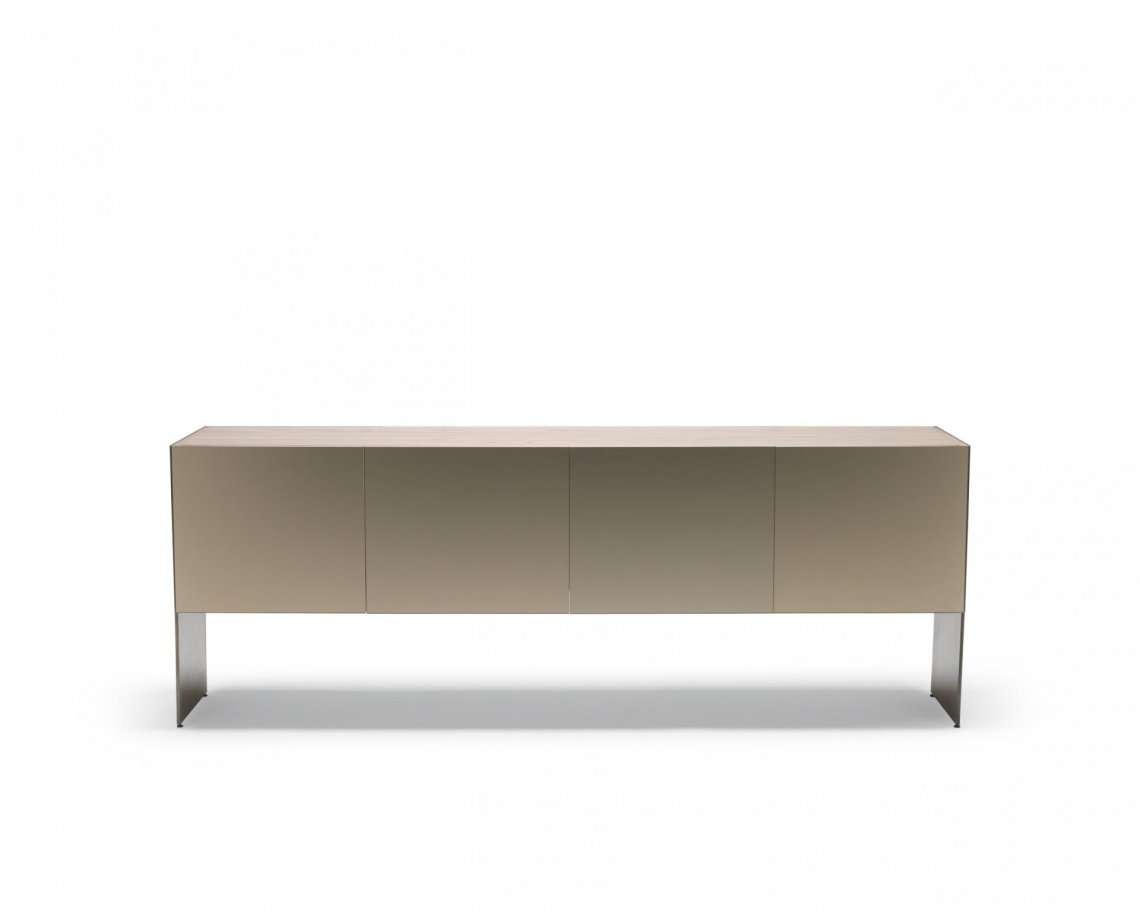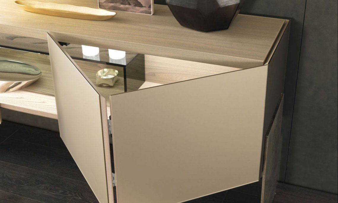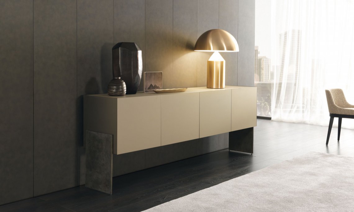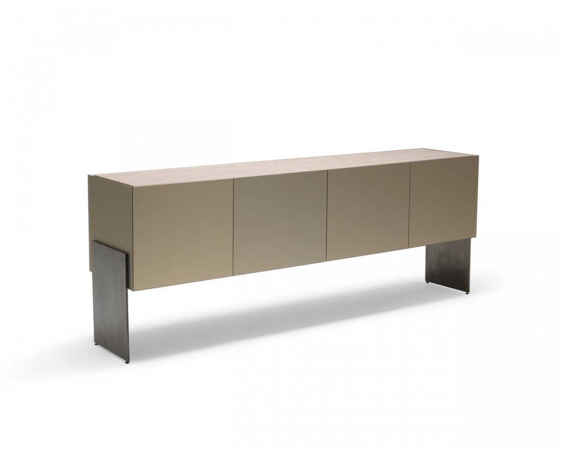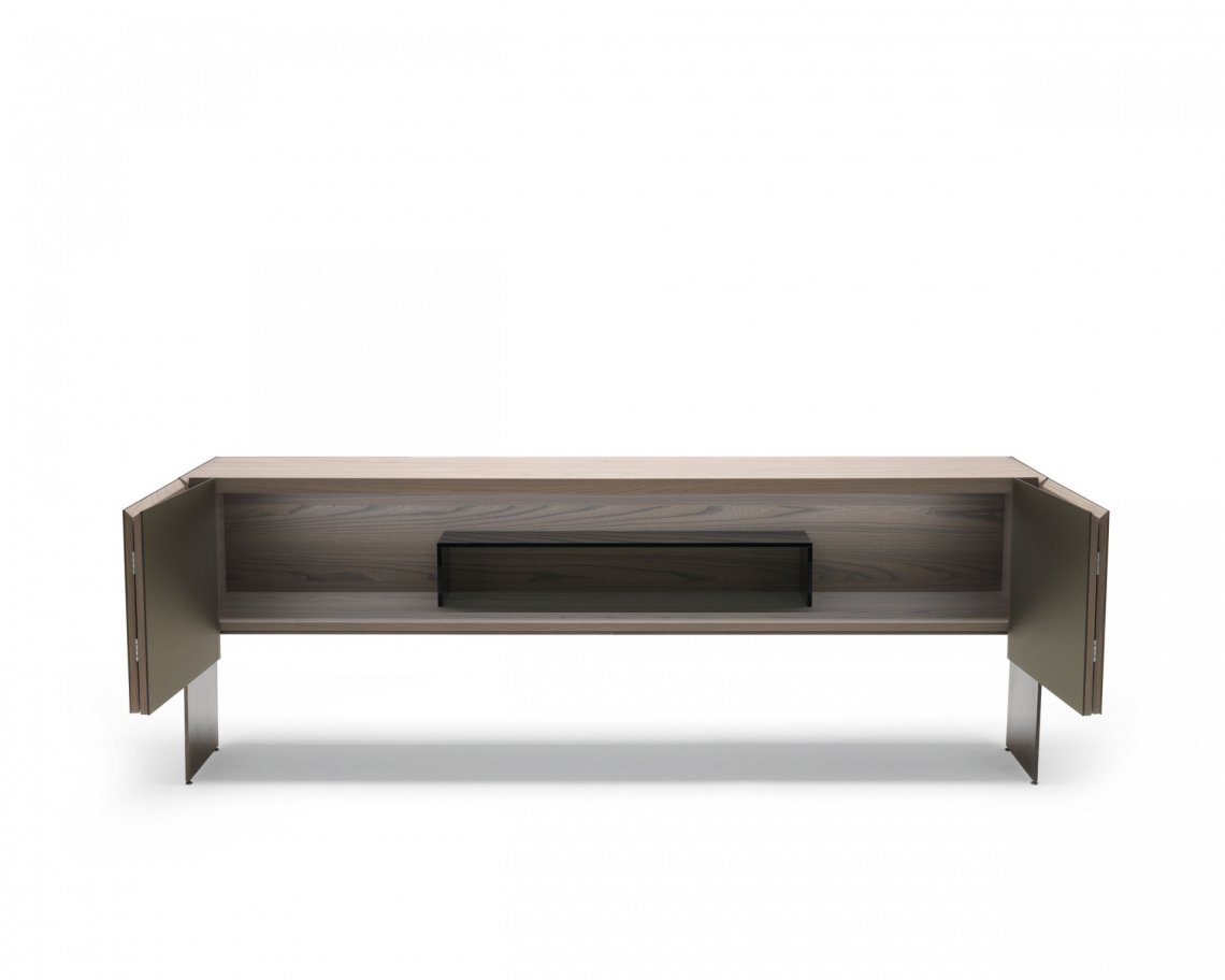 修長的Aipim餐邊柜,傾腿與側面的延伸傳遞出一種優(yōu)雅感,最初的雙折疊門完全像一本書一樣打開展現內部的全貌。這件作品的內在精致使它從簡單的存儲物品提升到精致優(yōu)雅的外顯。