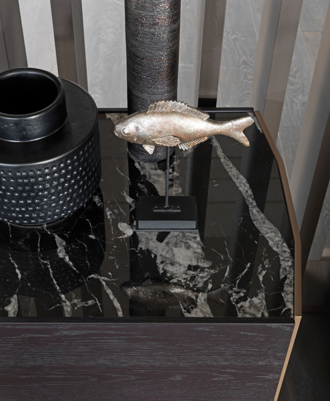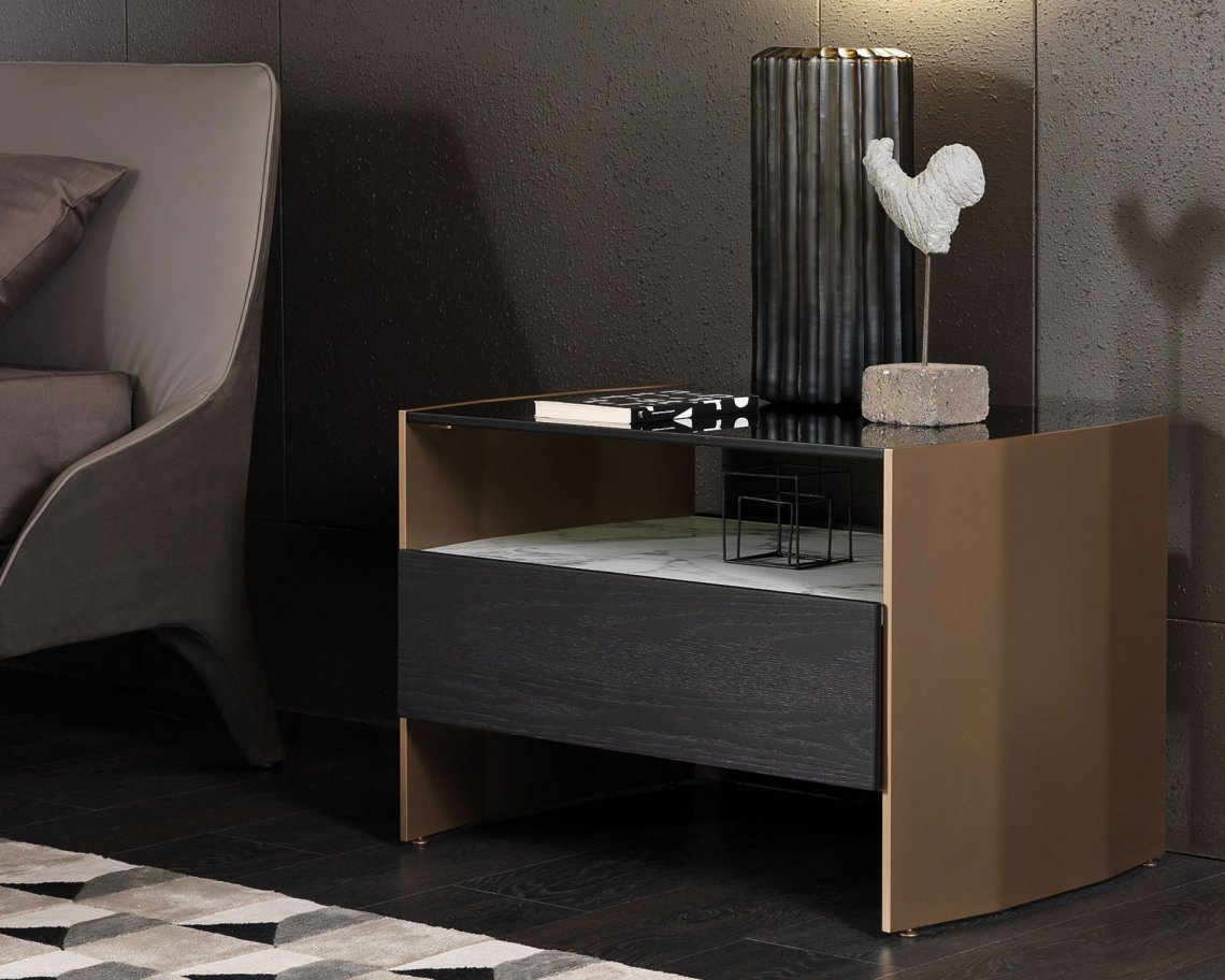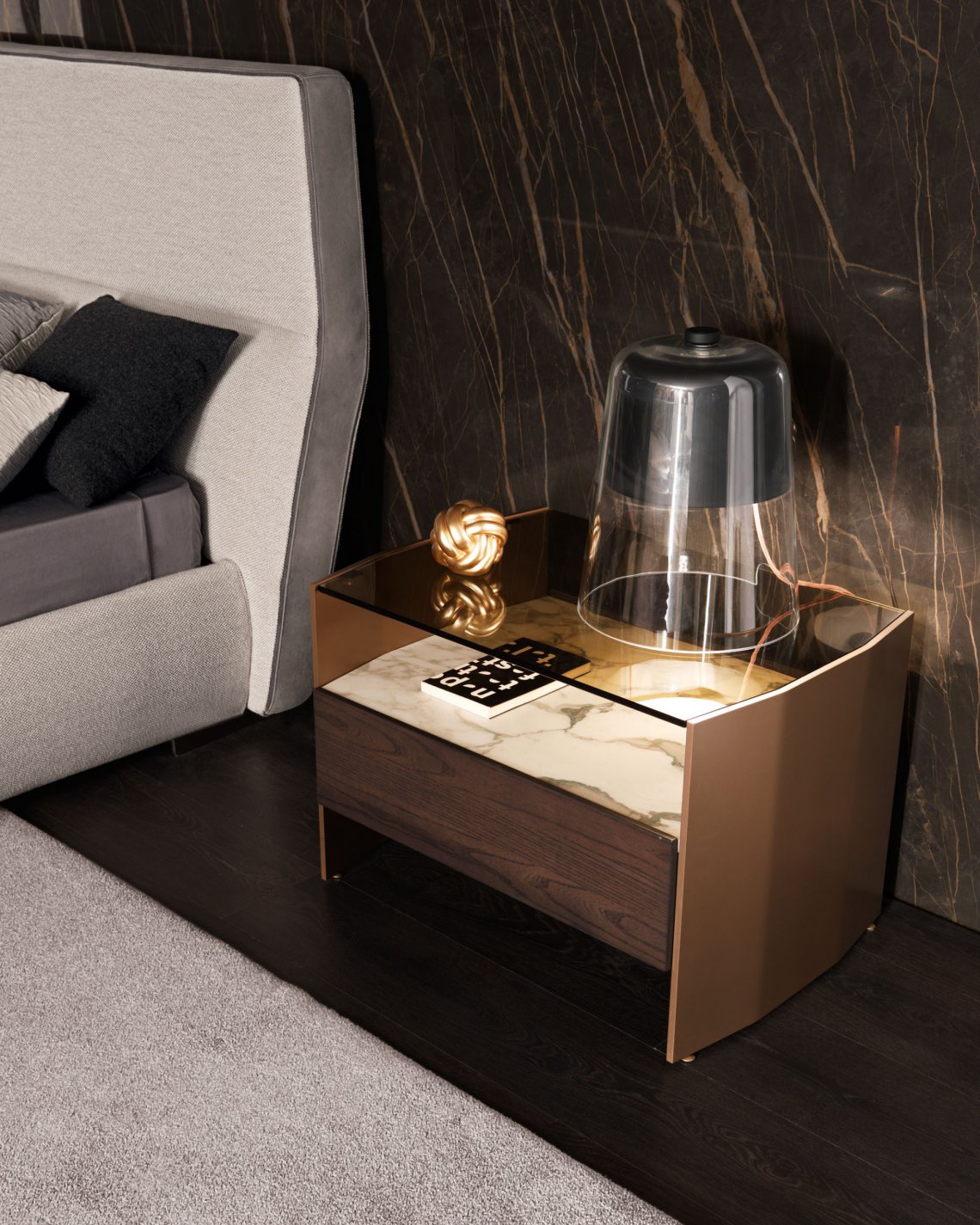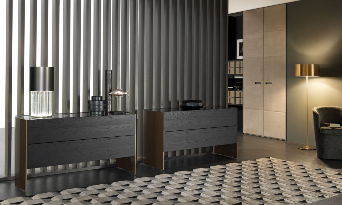 由兩種不同尺寸的床頭柜和一個邊柜組成MILVIAN適用于臥室區域,呈現高雅的風格。原始的橡木結構,結合如同建筑般延伸到地面支腳,凸顯出獨特精致的設計細節。多種飾面選擇,抽屜和隔層可進行雙面收納,實現美學與實用的雙重平衡。