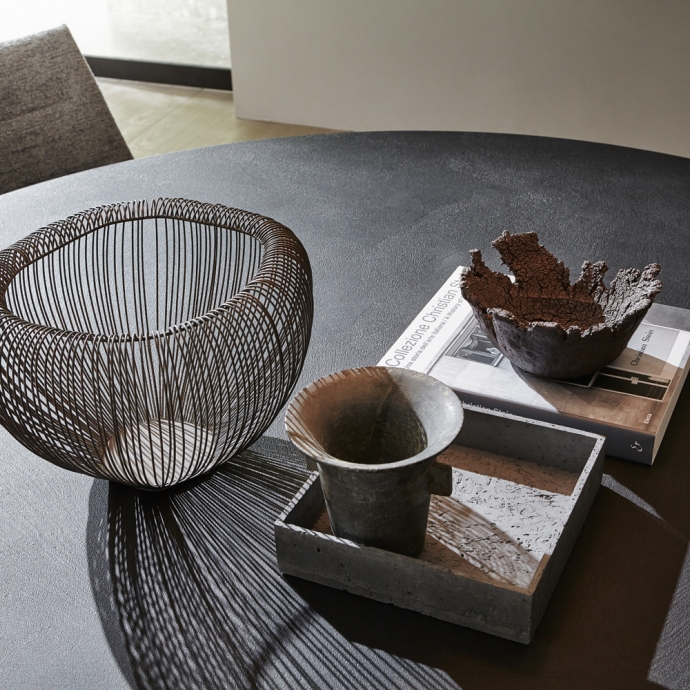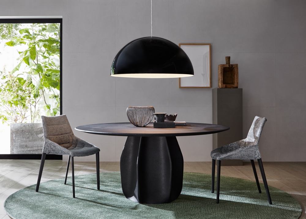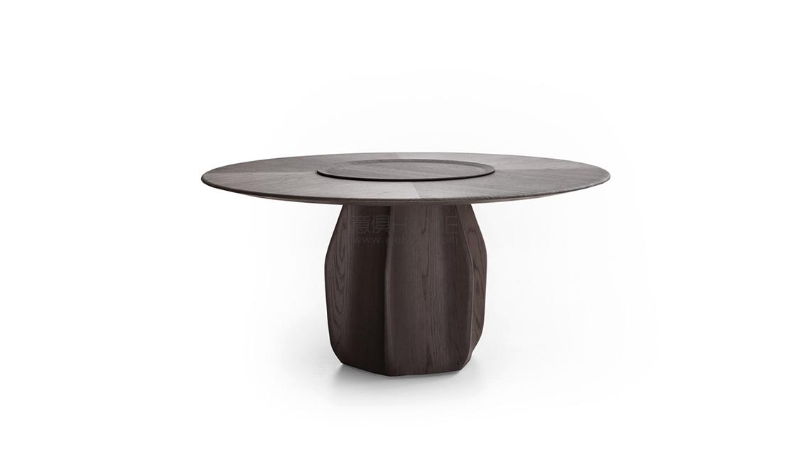 Asterias是原產(chǎn)于墨西哥山區(qū)的一種仙人掌,也是Patricia Urquiola所設(shè)計的產(chǎn)品的名字。圓桌尺寸較大,中間的支撐柱與仙人掌的形狀相呼應(yīng)。支撐柱實際上由六面曲木板組成,形成六面體,側(cè)壁結(jié)合處向外凸出。采用3D打印成型特定技術(shù)制成。桌面采用(160或180厘米)圓形邊緣,桌面上分成四個區(qū)域,形成有趣的幾何設(shè)計。圓桌還配有一個實用的配件;中央轉(zhuǎn)盤(Lazy Susan),深受亞洲國家喜愛。