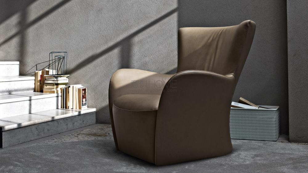 Mandrague,風格上融合了經典的bergère椅和60年代的“波普藝術”扶手椅。一個具有包裹外形的扶手椅,旨在創造一個私密的空間,從而切斷自己與外面世界的聯系。它的特征在于具有一個厚度和曲線相連的標準比例。管狀鋼框架由聚氨酯海綿包裹,織物或皮革面料完全可拆卸。可選固定的或可旋轉的底座,以滿足所有場合的要求。馬鞍皮面料型號使整個系列更為完整。
