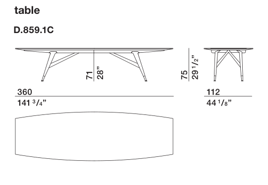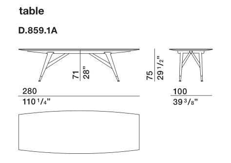 D.859.1桌子主要用作大型會(huì)議桌,最多可容納10個(gè)座位,在觀眾席的擺設(shè)中脫穎而出,不僅因其令人印象深刻的3.60米長(zhǎng)的尺寸長(zhǎng),而且最重要的是其精致簡(jiǎn)潔的設(shè)計(jì)。 梯形基底以其輕盈和現(xiàn)代風(fēng)格而著稱。一個(gè)真正的單跨式橋梁式結(jié)構(gòu),其上放置一個(gè)錐形的支架,突出其空氣動(dòng)力學(xué)。原始版本中實(shí)木支架末端采用黃銅制成,此次設(shè)計(jì)中可選擇原始版本也可選擇深色實(shí)木如黑色實(shí)木制成。