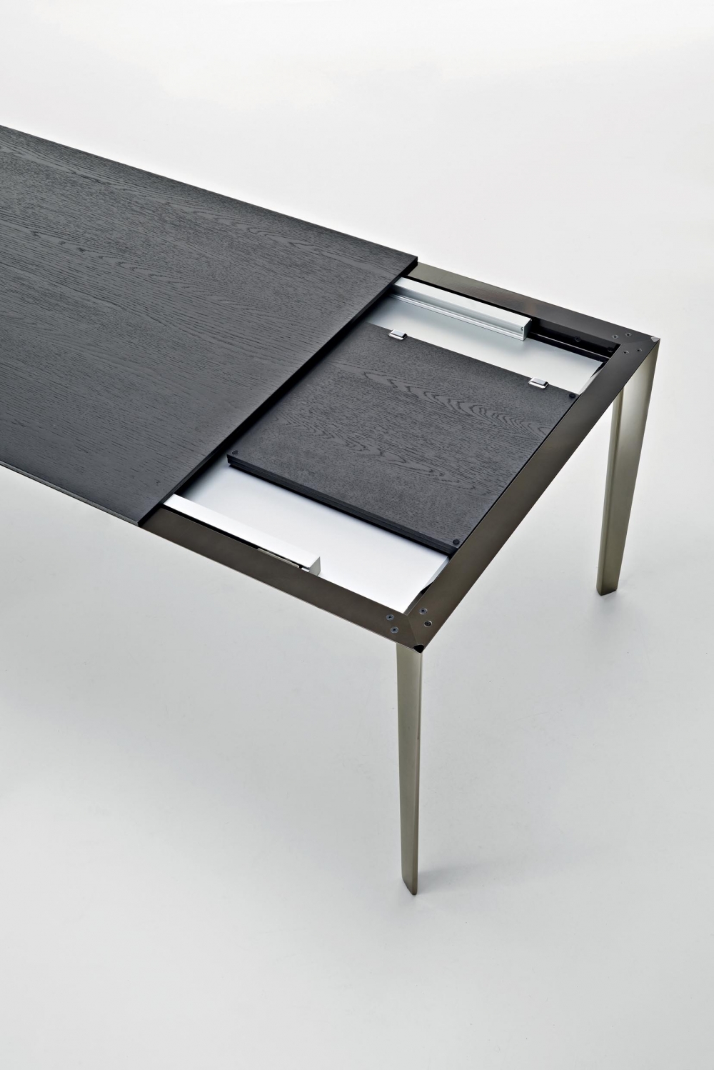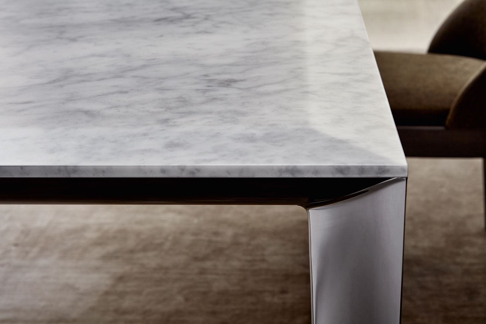 Filigree餐桌可以選用一系列不同尺寸或者可伸縮款式。高光和亞光壓鑄鋁制框架支撐著臺面,豐富的材質(zhì)選擇提升了價值感。通過隱藏的可橫向折疊五金系統(tǒng)實現(xiàn)可伸縮餐桌功能。整張桌面為一個整體,并可以通過延伸的桌面擴(kuò)大尺寸。桌腿盡量外置以最大限度地利用空間,桌面極其纖薄,值得一提的是用于容納伸縮桌面功能件的空腔結(jié)構(gòu)內(nèi)部只有38mm凈高。餐桌可選用不同的材料和飾面以滿足所有需要。