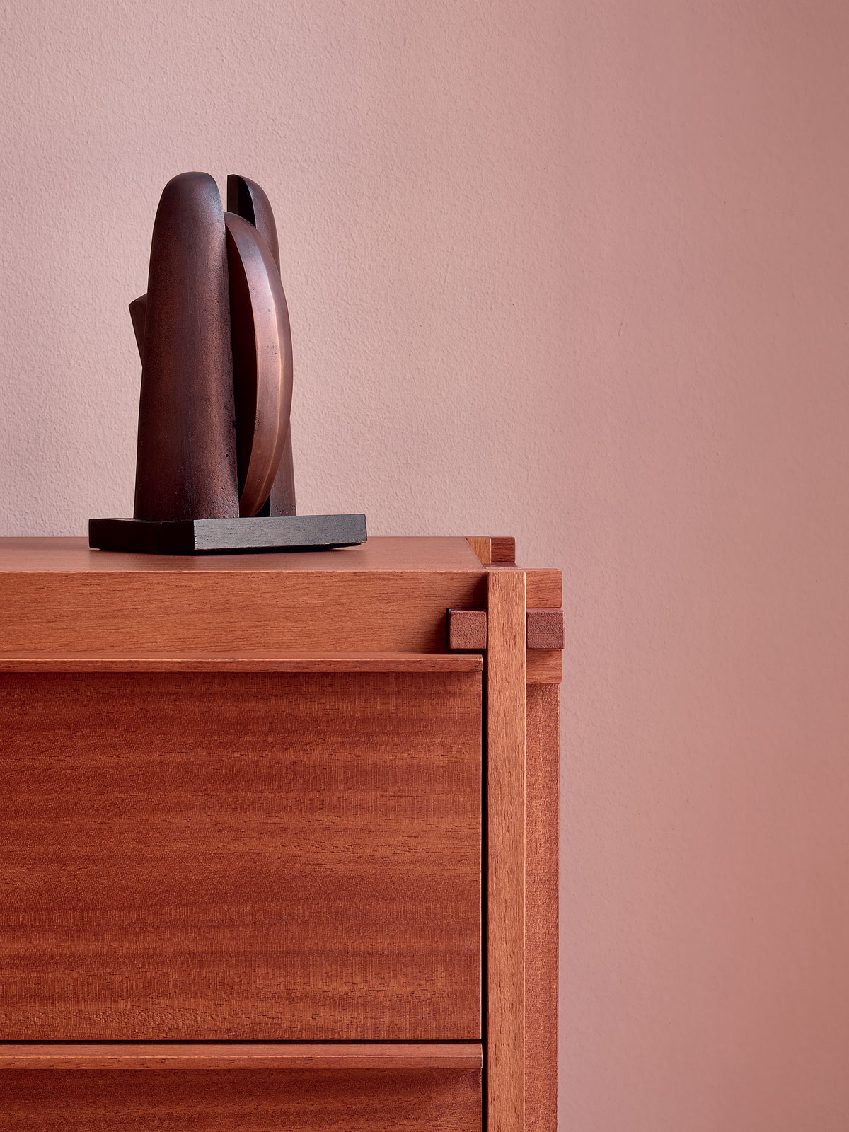 MHC.1 is a new edition of the prototype of the first modern piece of furniture made by Molteni&C, the chest of drawers designed by Werner Blaser. Thought it was never produced industrially, in 1955 it won first prize at the Cantù “Prima mostra selettiva - Concorso internazionale del mobile”, a competition designed to re-qualify the image of Italian furniture making. The jury was made up of Gio Ponti, Alvar Alto, Romano Barocchi, Carlo de Carli and Finn Juhl. The unusual joinery features a simple three-fork joint.