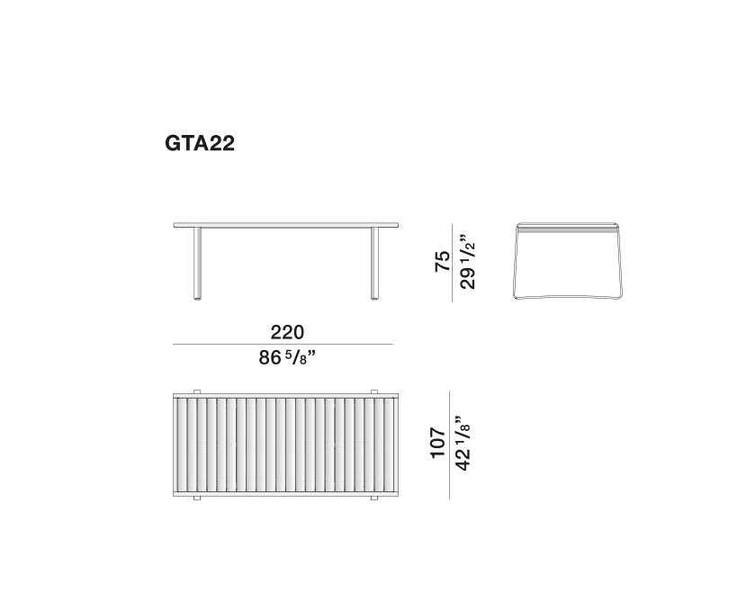 The Timeout Collection dining table interprets the archetype of outdoor tables with a slatted top for water drainage. Seating 6 or 8, it stands out for its carefully calibrated proportions and choice of materials that allow it to match both of Molteni&C's new outdoor collections.
