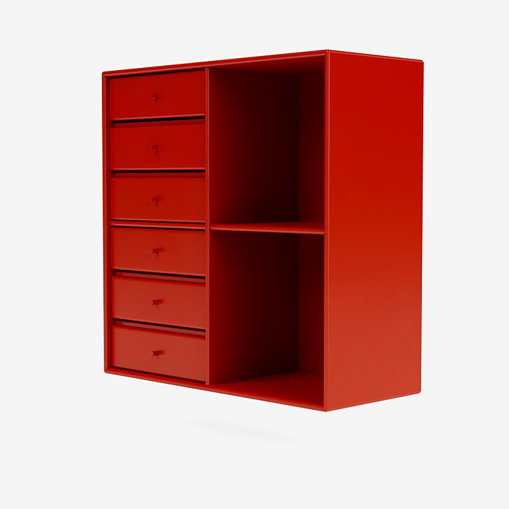 1623 架子有六個抽屜和兩個大型開放式隔間。該模塊提供了封閉式存儲空間和開放式隔間的實用且迷人的組合。開放空間非常適合展示您最喜歡的書籍、最美麗的花瓶或漂亮的碗。抽屜給人一種觸覺上的享受,因為它們可以輕松滑開,露出寬敞的內部空間。該架子有 Montana 專門開發的 40 種環保漆色可供選擇。這一標志性設計為家中幾乎所有房間增添了實用性和多功能性。該擱板可單獨使用,也可與 Montana 擱架系統的其他模塊結合使用。1623 擱板深度有 30、38 和 46.8 厘米可供選擇,并配有涂漆手柄。