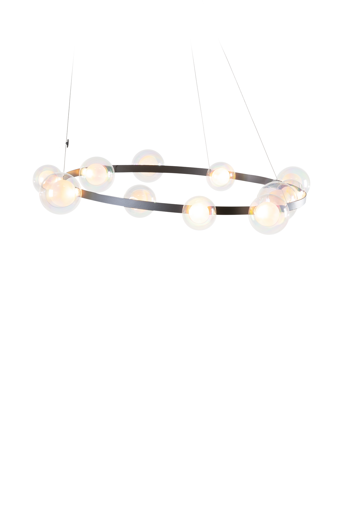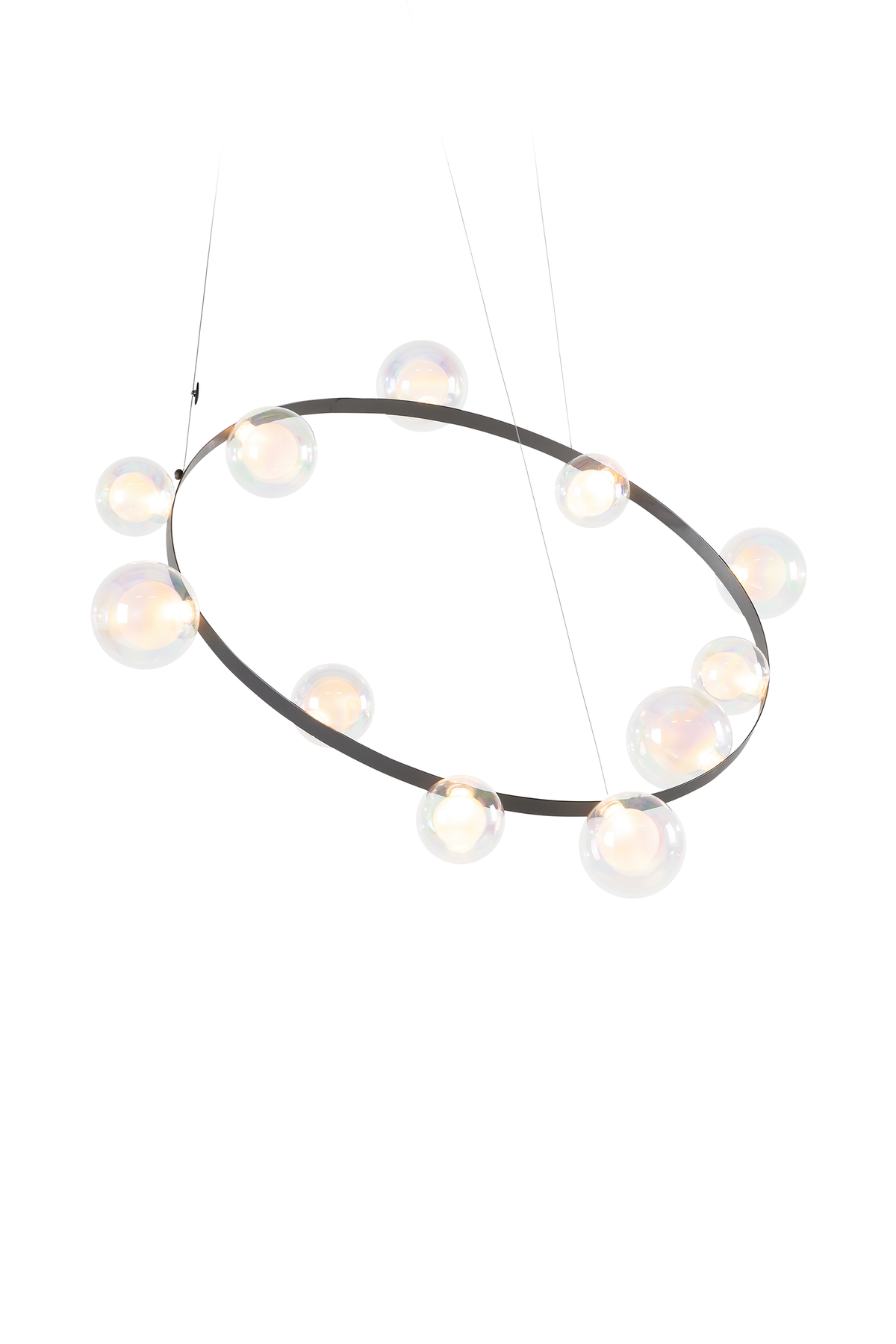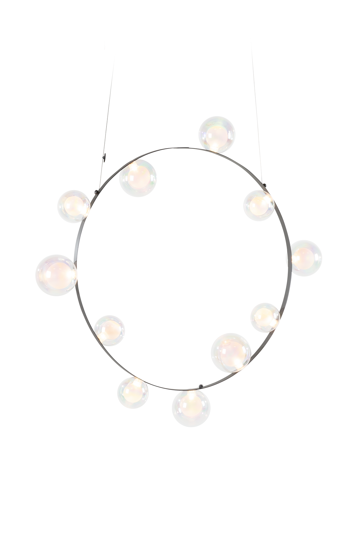 Hubble Bubble, designed by Marcel Wanders, takes you back to the freedom of blowing bubbles and running barefoot in the open air. Evoke a moment in which a frisky spirit is set free, only to find its way back home with an everlasting memory. These recollections are symbolized in each element of the Hubble Bubble. The glass bubbles are vailable in oil-iridescent and frosted versions and the Hubble Bubble can be hung both horizontally and vertically. Freedom is in the air…