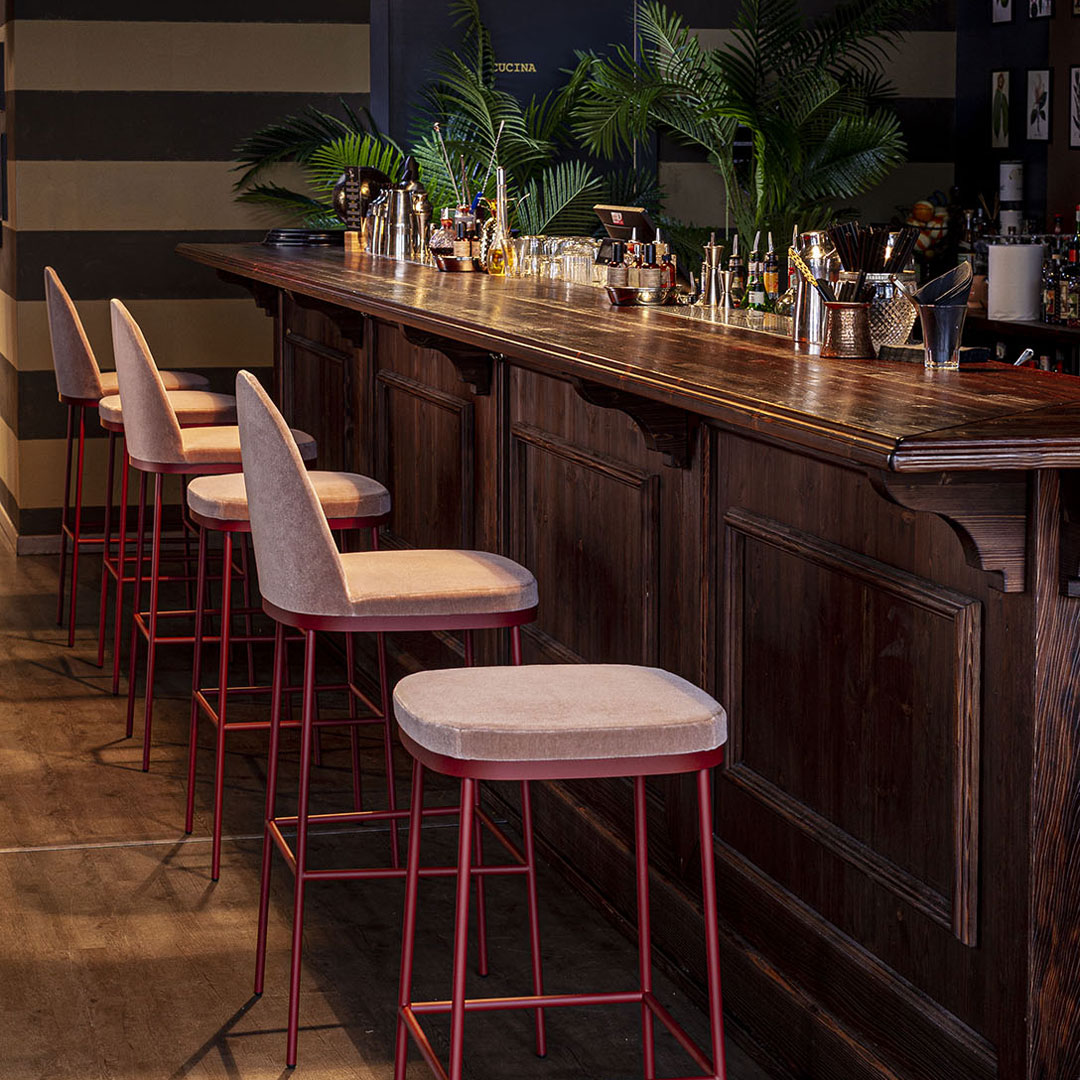 Gli sgabelli Precious sono stati disegnati cercando di assottigliare le sezioni al limite del possibile per rendere il prodotto leggero ed elegante, sfidando le leggi di tenuta. La forma minimale si abbina però ad una solidità del prodotto che lo rende adatto anche per un uso intensivo come quello del contract. Binomio perfetto e non contrapposizione tra pulizia estrema delle forme e solidità. Seguendo il gusto attuale e l’amore per i materiali “preziosi” la collezione Precious è stata arricchita nella proposta di tessili e finiture, con una particolare cura dei dettagli.