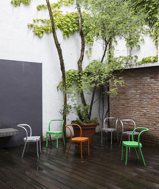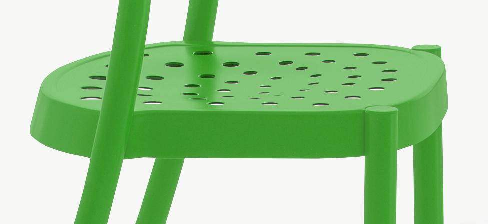 Per solidità e comodità la forma sembra suggerire il modus operandi dei maestri falegnami di epoca pre-industriale. Lo schienale contiene e garantisce la massima ergonomicità, mentre l’alluminio, oltre a ridurne sensibilmente il peso, rende possibile l’utilizzo in esterno. Impilabile, colorata e confortevole, St.Mark trova la sua bellezza nella semplicità e nella versatilità dell’uso, permettendo di rivisitare in chiave contemporanea qualunque tipologia di spazio, dall’area pubblica all’ambiente domestico.