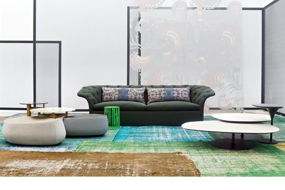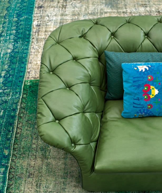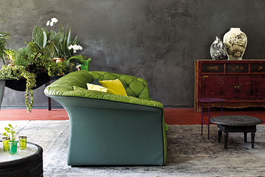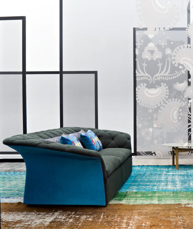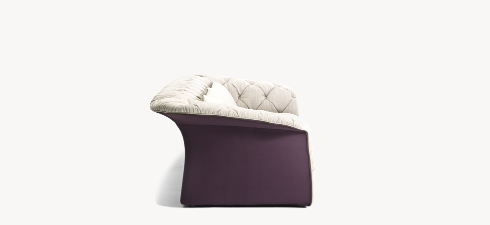 Poliuretano espanso ignifugo a densità differenziate e fibra poliestere con struttura interna in legno. Base in lamiera di acciaio tagliata al laser, sagomata e verniciata a polveri. La collezione Modernista non è sfoderabile.