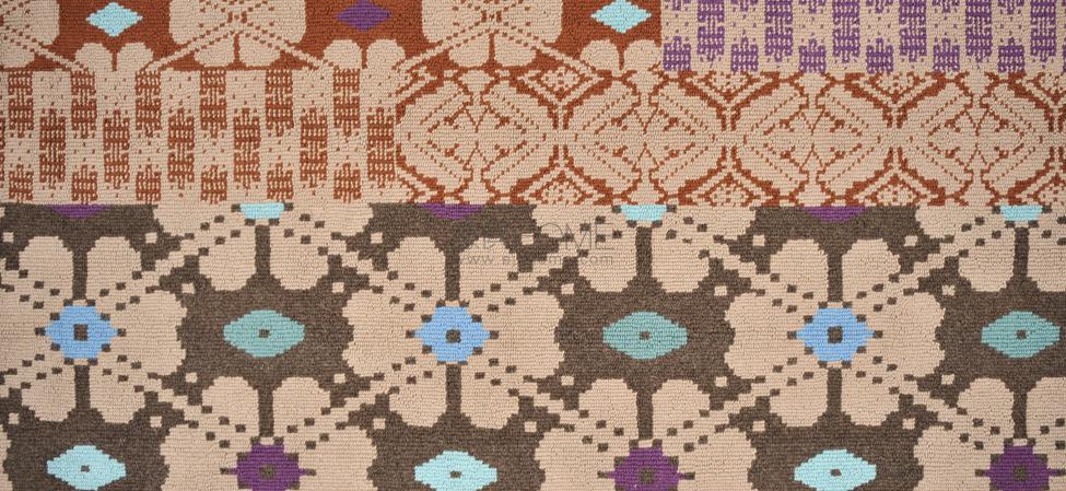 Collezione di tappeti in pura lana realizzati manualmente in Sardegna su antichi telai in legno con la tecnica locale dei “Pibiones”.