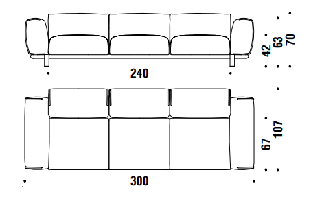 Espanso schiumato a freddo ignifugo e fibra poliestere con struttura interna in acciaio. Piedi in acciaio verniciato a polveri. Sottopiedi in polipropilene. I cuscini sono in poliuretano espanso a densità differenziate e fibra poliestere. La collezione Bold è sfoderabile.