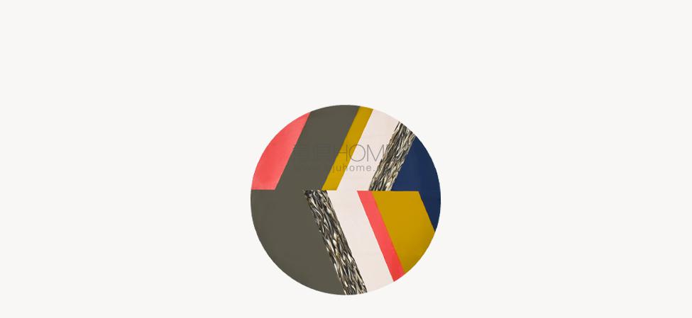 Top in Sintetica? metacrilato colorato e decorato a mano. Tagliato e composto come disegni riportati. Base in acciaio verniciato a polveri nero opaco. Sottopiedi in polipropilene.