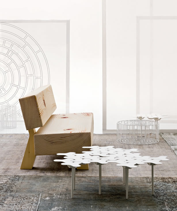 è una ricerca sul passaggio da due a tre dimensioni partendo dall’osservazione della concia di un quadrupede. Questa pelle stesa ci rimanda al ricordo dell’animale che era. La struttura è data da una rete esagonale che si ispira invece alla geometria molecolare o a un cristallo di neve. La forma organica della pelle per il vestito della sedia. La geometria rigorosa della natura per la sua struttura. Come gli eschimesi che si proteggono con le pelli degli animali, così Nanook coglie nel suo vestito in tessuto tecnico lo stesso rimando tribale. La stessa pelle piegata, tridimensionale, diventa oggetto contemporaneo avvalendosi della tecnica di stampa digitale per il rivestimento, dello stampo in materia sintetica per la struttura. Il sistema di sedute Nanook, come quella eschimese protagonista del primo documentario naturalistico della cinematografia, mantiene una memoria tribale guardando al futuro e alla tecnologia con lo stesso ottimismo con cui quell’uomo guardava i suoi ghiacci.