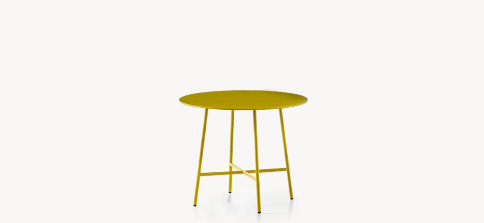 Piano in MDF laccato opaco. Base in acciaio con verniciatura a polveri.