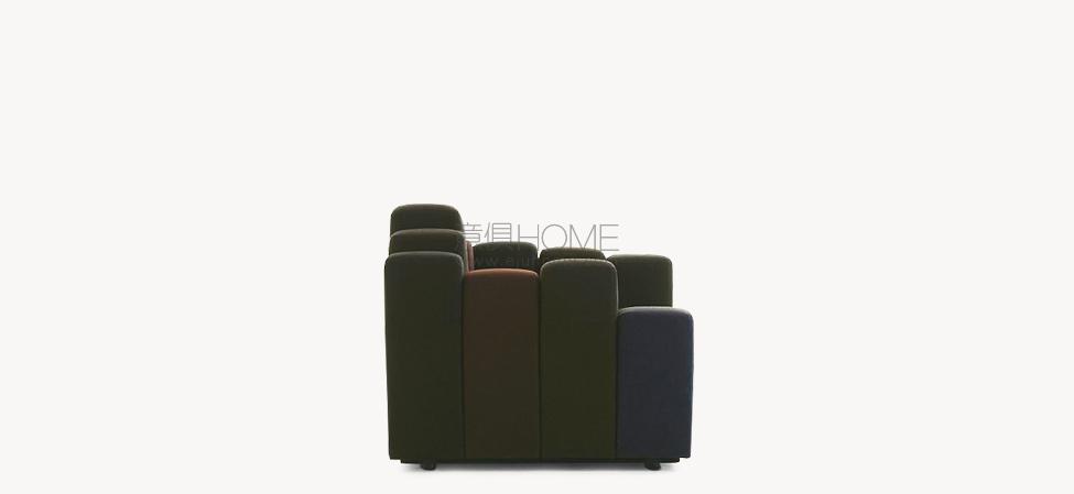 del pixel, inteso come singolo elemento di un’immagine, nasce il modulo base attraverso il quale il designer costruisce il suo progetto. Morbidi parallelepipedi a base quadrata, in diverse altezze, offrono una libertà compositiva che amplifica la modularità, la esaspera, promuovendola a condizione strutturale. Il risultato apre a infinite figure e composizioni, intersecando il mondo del design industriale con un approccio creativo aperto proprio del mondo dell’arte. I singoli moduli, apparentemente molto semplici, nascondono una grande complessità costruttiva, strutturale e produttiva. In basso più rigidi, per contenere il perno metallico; più morbidi nella parte alta, per garantire il massimo comfort alla seduta.