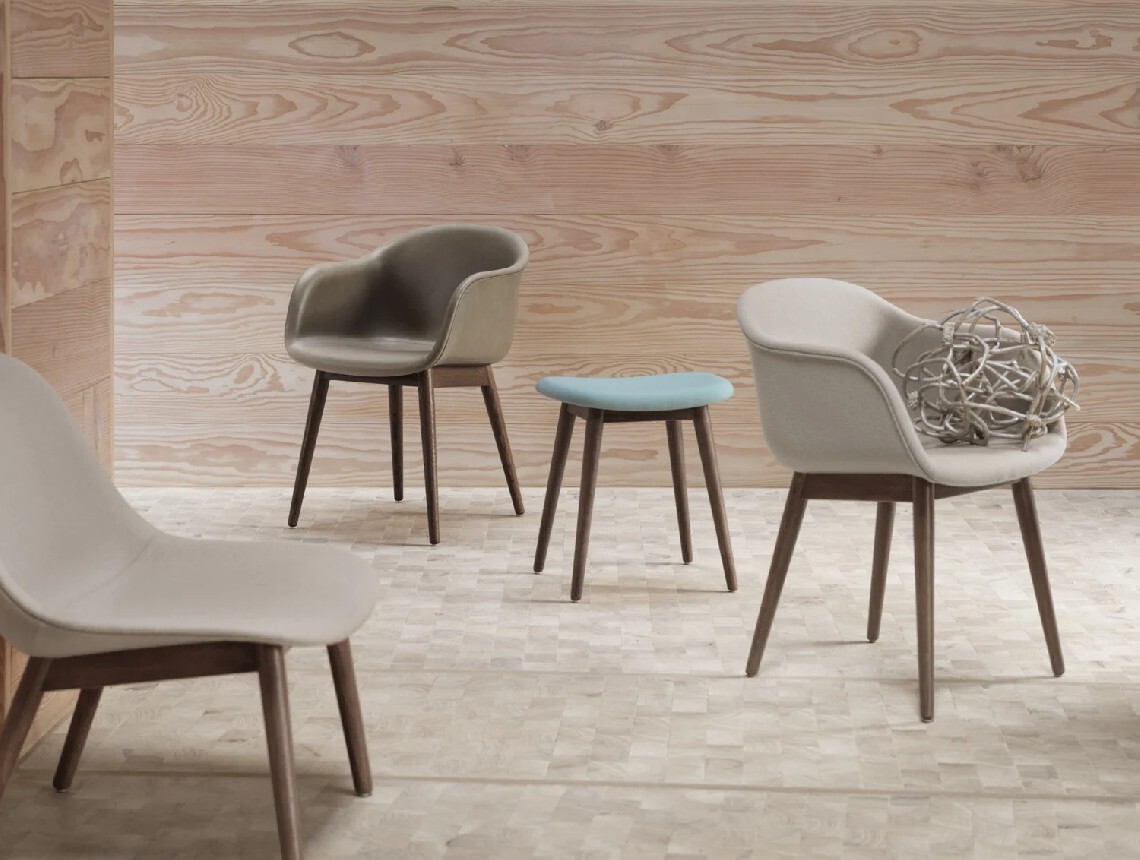 With an expression that is at once comfortable and harmonious, the Fiber Bar Stool is a design with an unobtrusive yet distinct identity. With its shell made in an innovative composite of plastic and wood fibers, the Fiber Bar Stool has a textured, matte surface and soft, inviting touch, paired with its embracing seat. Designed in two different heights, both available with or without backrest, the Fiber Bar Stool encapsulates the ideals of simply modern design with a human touch. When viewed from afar, the wood fibers of its shell blend into the surface for a matte finish yet appear when viewed up-close for a modern sentiment, joined by a wooden base.
