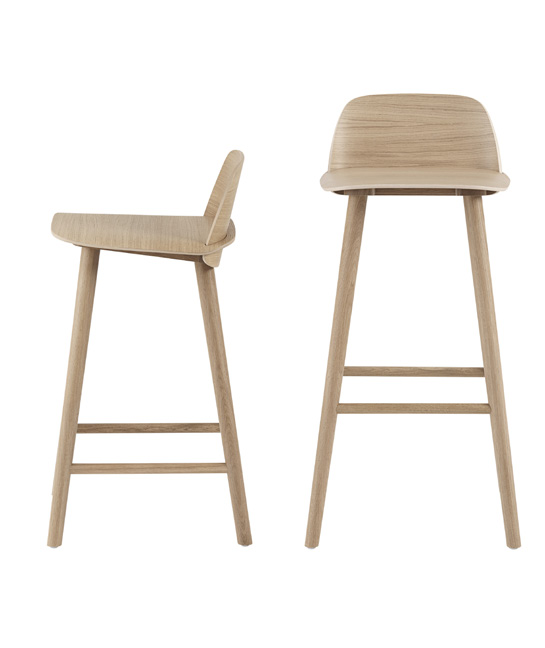 The Nerd Bar Stool is designed with a playfully contemporary expression, joined by its wooden Scandinavian materiality. The seamless integration of its back and seat makes for a characterful detail alongside the curved edges of its seat.