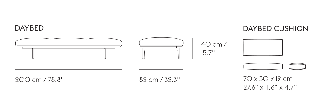 The Outline Daybed translates the elegant, simple lines of the Outline Series into the daybed typology, bringing a new perspective to the archetypal form of a daybed, paired with its soft seat. The design features architectural lines and slender steel legs for an elevated, refined sentiment. Add the Outline Daybed Cushion for additional comfort and neckrest.