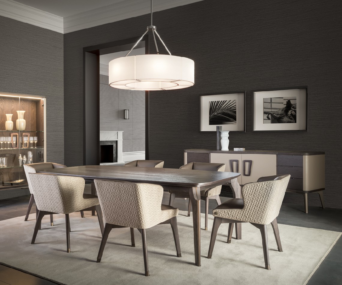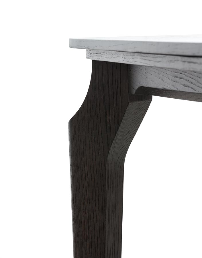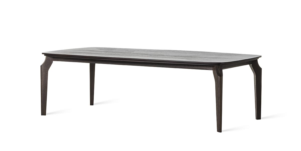 Tavolo con struttura in legno. Gambe con inserti laccato bronzo.