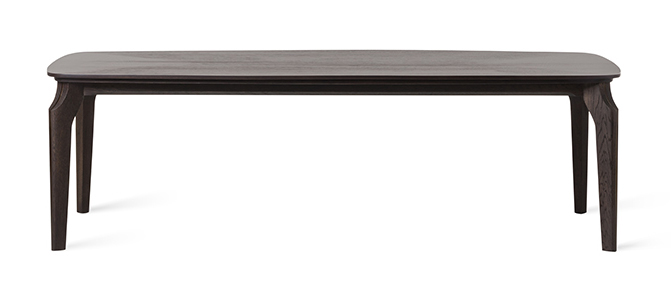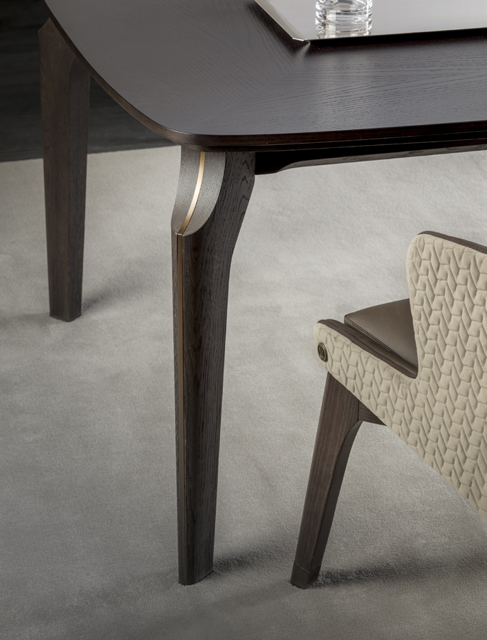 Tablewith structure in wood. Legs with bronzed metal lacquered inserts.
