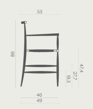 Bice è una sedia snella e a tratti insolita. Nel suo design essenziale spicca uno schienale a sventola, eccesso capace di equilibrare e caratterizzare la sua struttura.