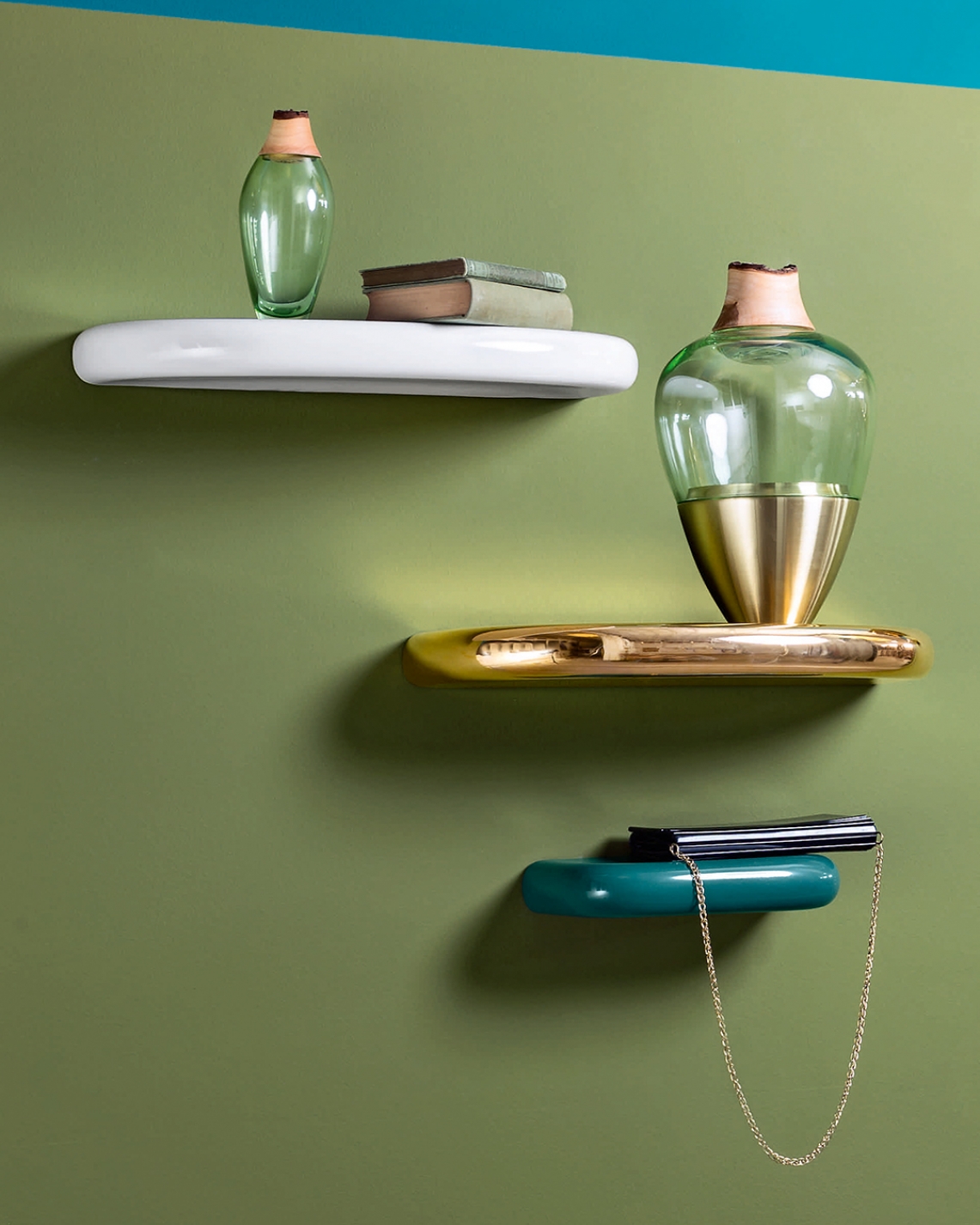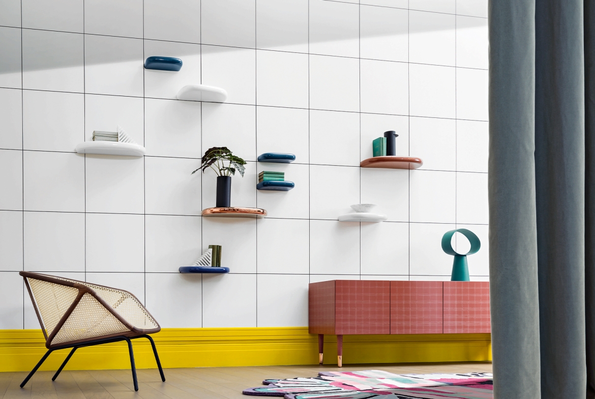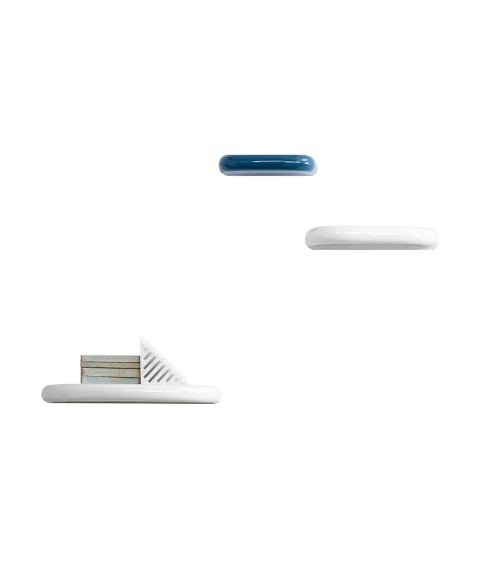 Do you remember as kids when you used to try to skim stones on the water? Well Pinna is a collection of three shelves in organic shapes, which could very easily bounce on water, but they would definitely look better on the walls at home. They are made of thick, glossy ceramic. But please don't throw them.