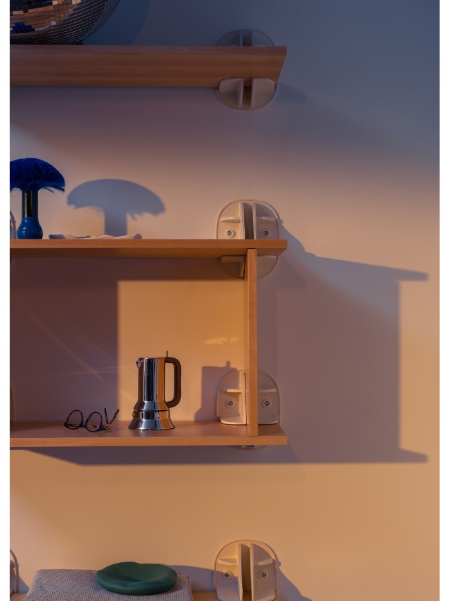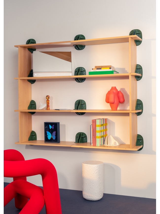 BAGOU could only be seen as an ornamental mask, but the main features of its face make it the basis of an ultra-efficient and functional shelving system.