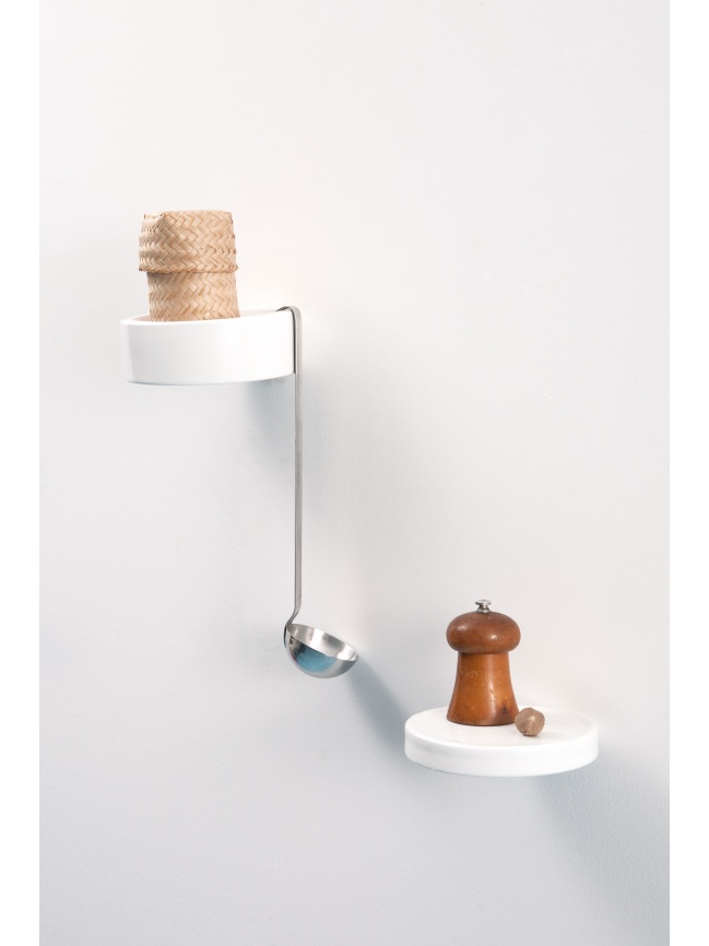 The small Balcon shelves, Bénitier tidy and Belvédère shelf/mirror with an incorporated screw are both available in birch or enamelled ceramic. Really easy to install in every room to display everyday objects. They can be used alone or set up as a group