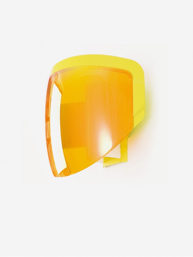 The Moto wall light designed by Jean-Baptiste Fastrez revisits the aesthetic codes of motorcycle equipment. Hieratic, ultra-reflective, producing numerous optical effects, when lit it diffuses slightly light through its translucent visor.