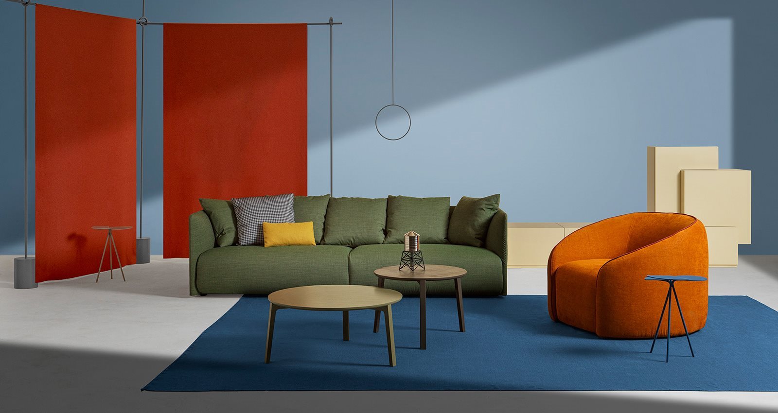 An armchair composed of two volumes, for a striking theatrical presence. Baloo has abundant forms that make it the true protagonist of any space. The edge in color tone or in different color give a special look to the product.