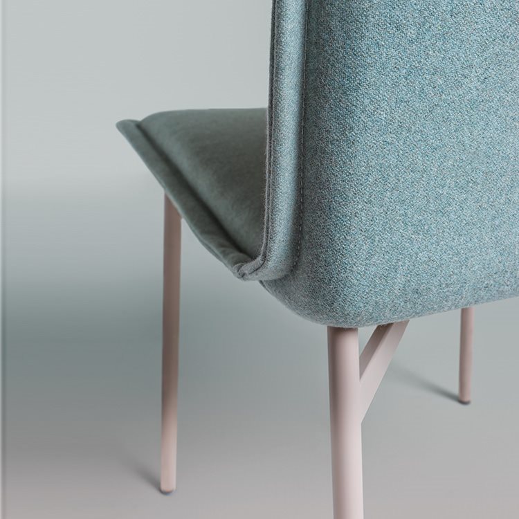 The reinforced steel legs are connected using a linear, crossover structure. This chair with its minimalist shape is perfect for both home and work environments.