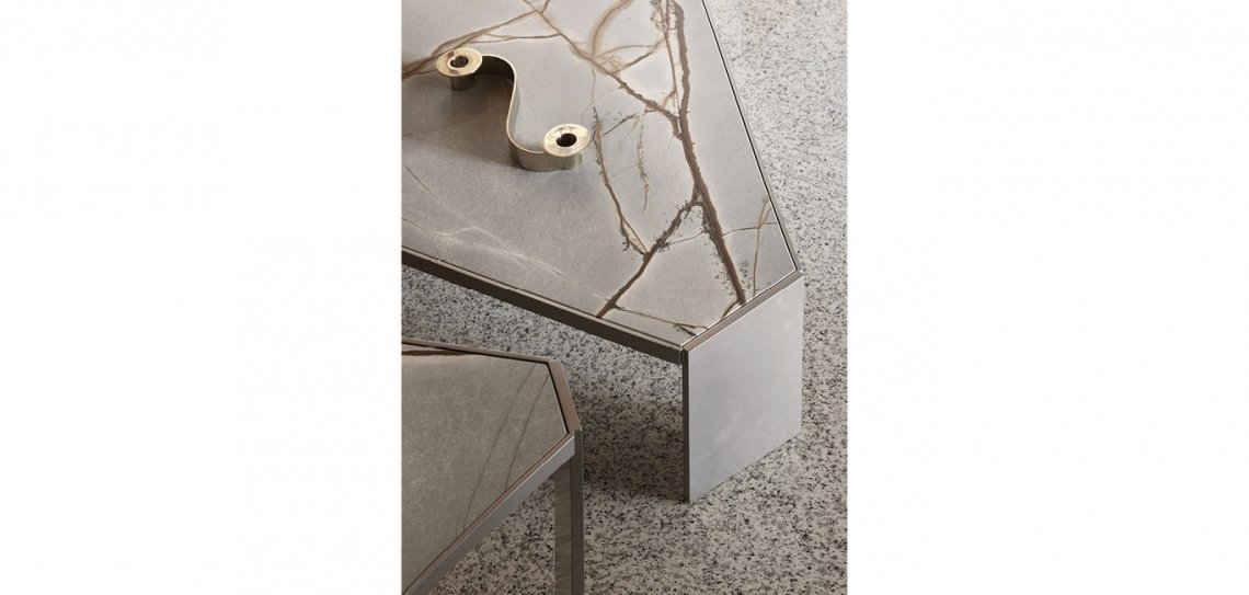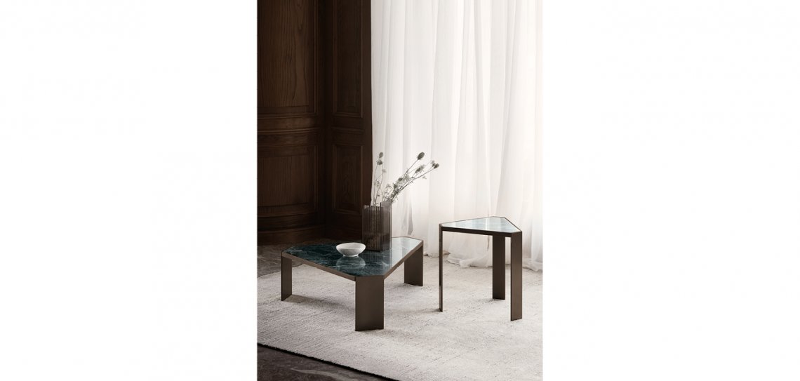 La collezione Monet e? caratterizzata dalla forma del piano triangolare che gli conferisce dinamicita? ed una notevole leggerezza dal punto di vista visivo. L’accostamento di materiali differenti crea dei forti contrasti materici. La forma sofisticata del tavolino Monet, con la selezione di marmi dai colori accesi, permettono di arricchire qualsiasi tipo di ambiente.